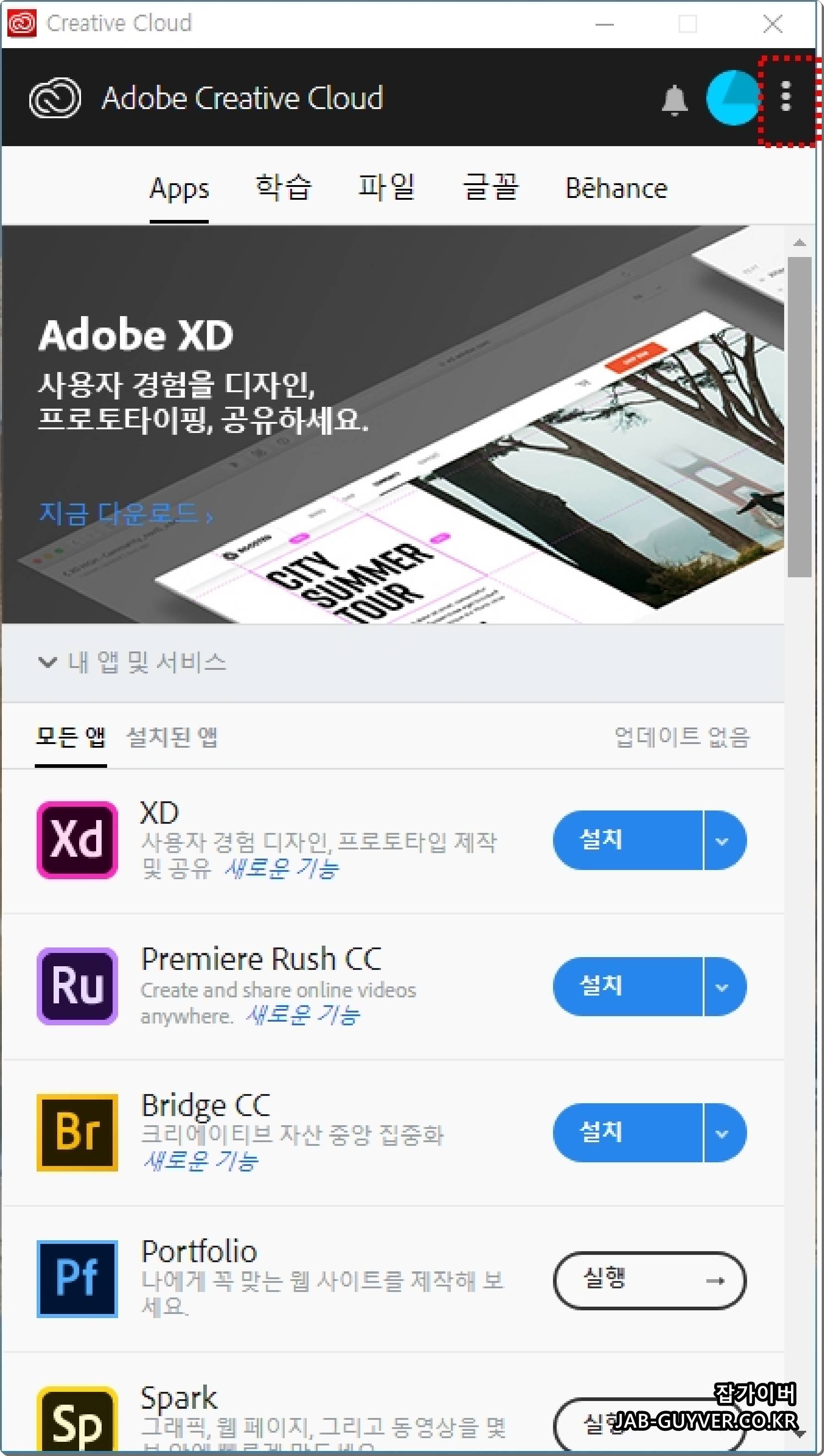 Creative Cloud 실행 후 환경설정으로 들어갑니다.