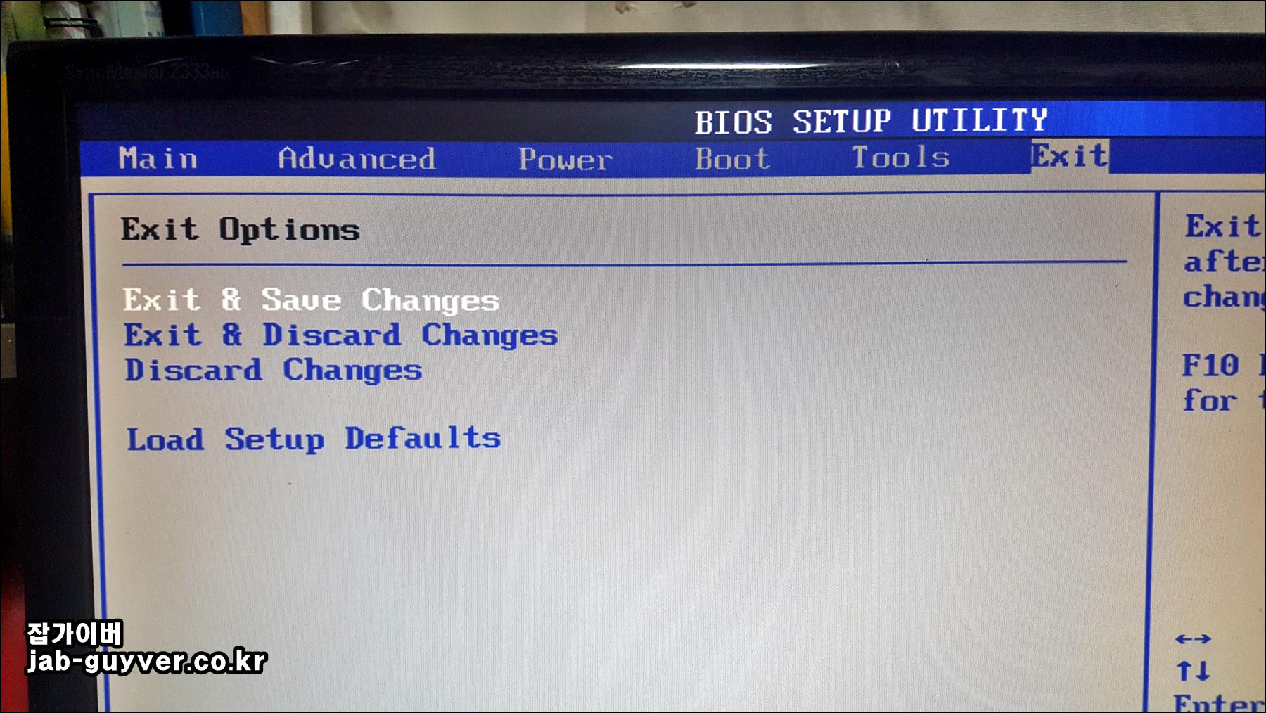 보통 Exit 메뉴에서 Save Changes 또는 Exit & Save 형태로 보이고, 저장과 동시에 재부팅이 진행됩니다.