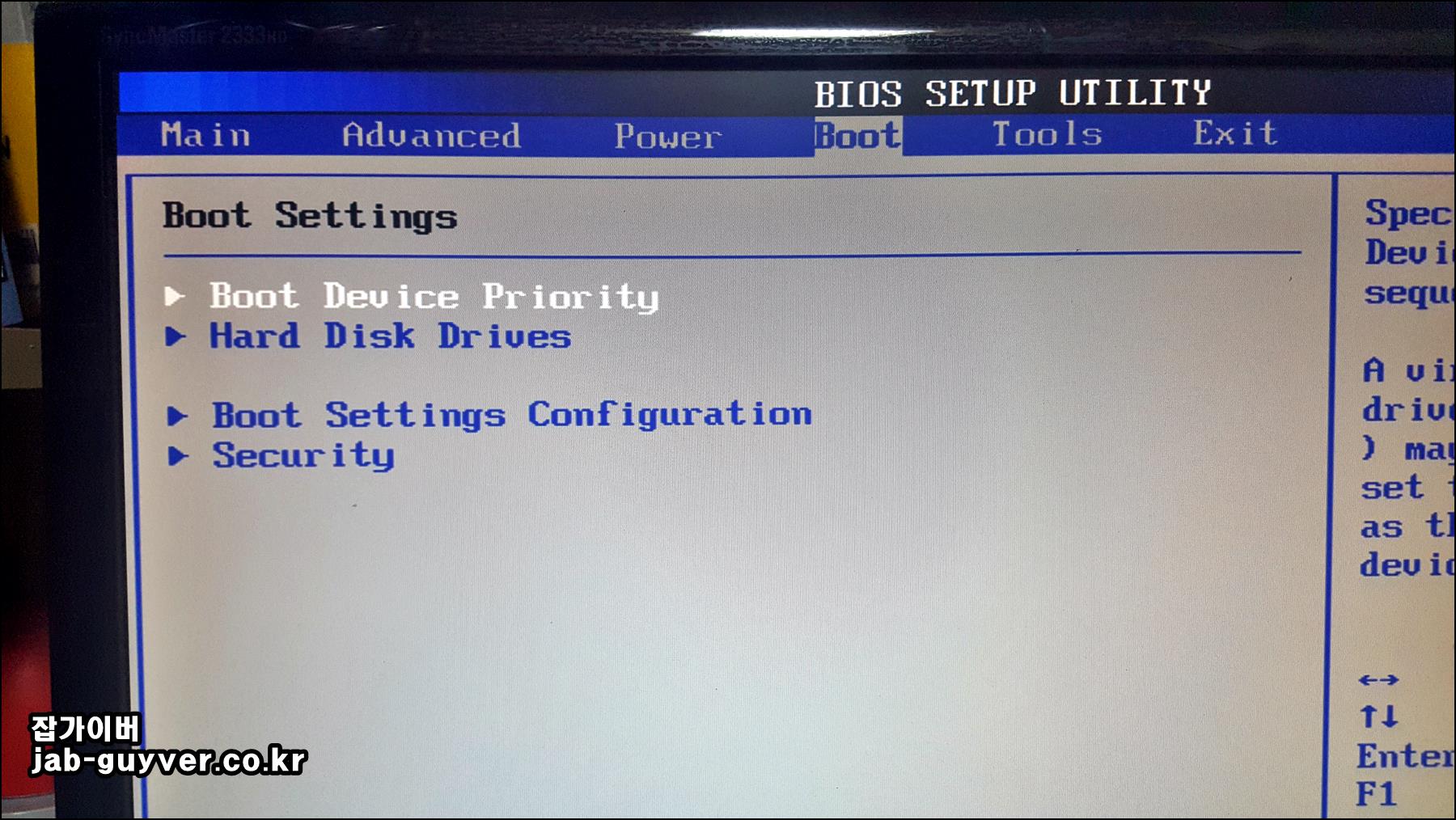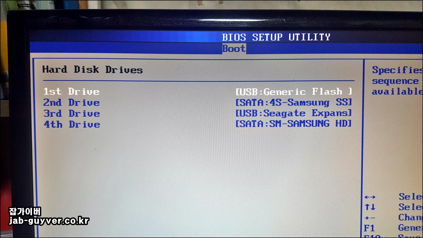 Boot 메뉴에서 USB 부팅순서 변경 어디를 건드리면 되는지