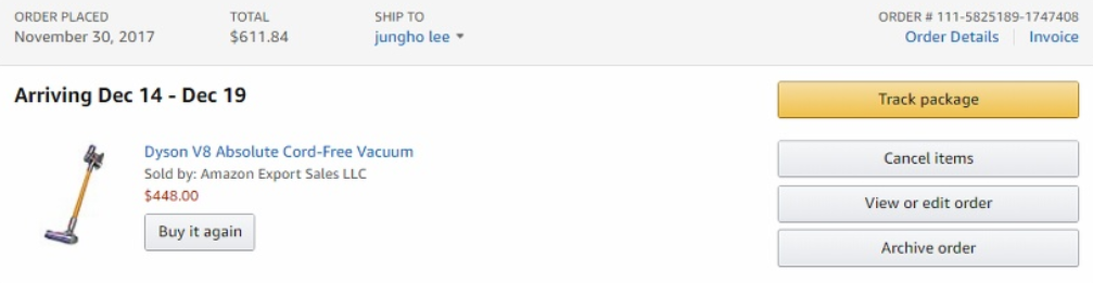 아마존 가입이 되었다면 다이슨 카본 파이버를 구입해보겠습니다.