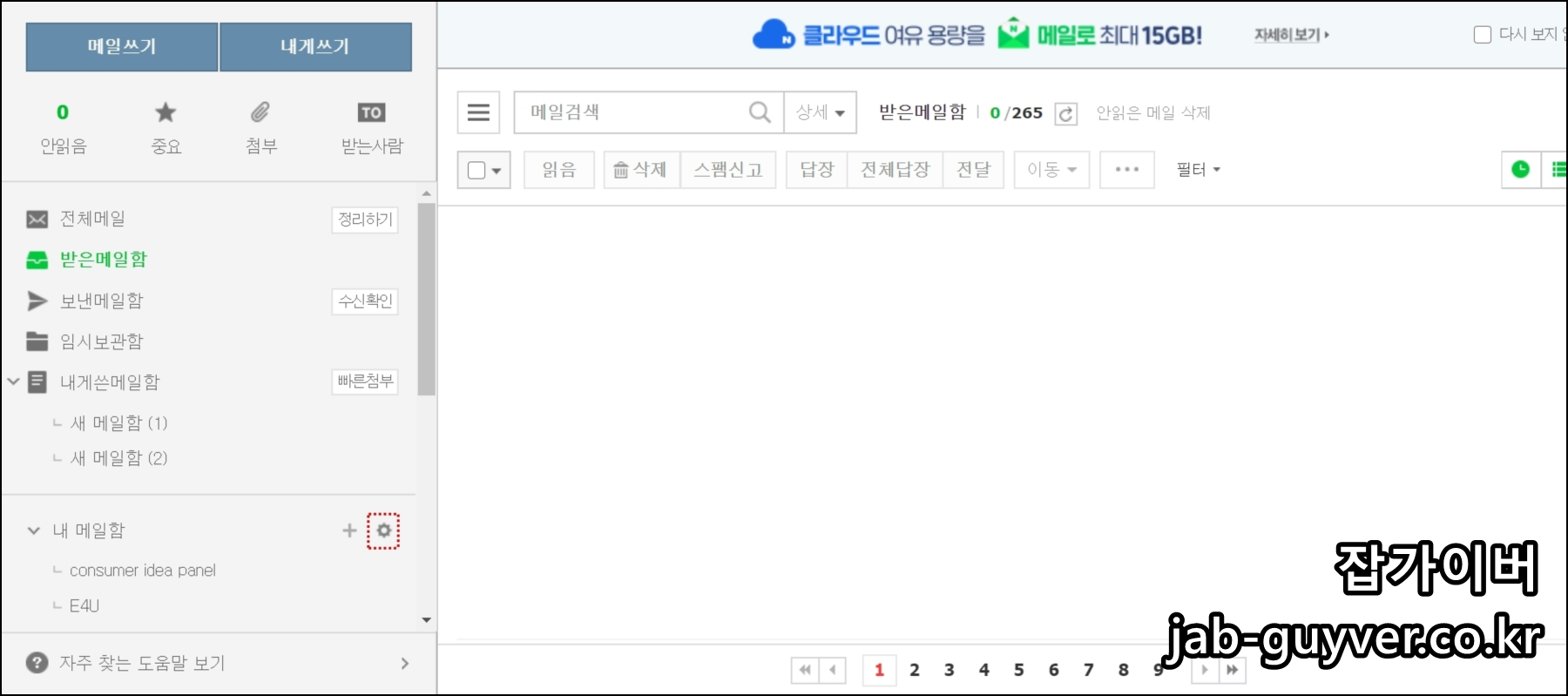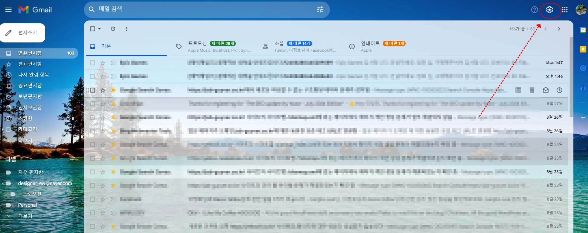 - 내 메일함 옆에 있는 기어마크를 선택해 설정창으로 이동합니다.