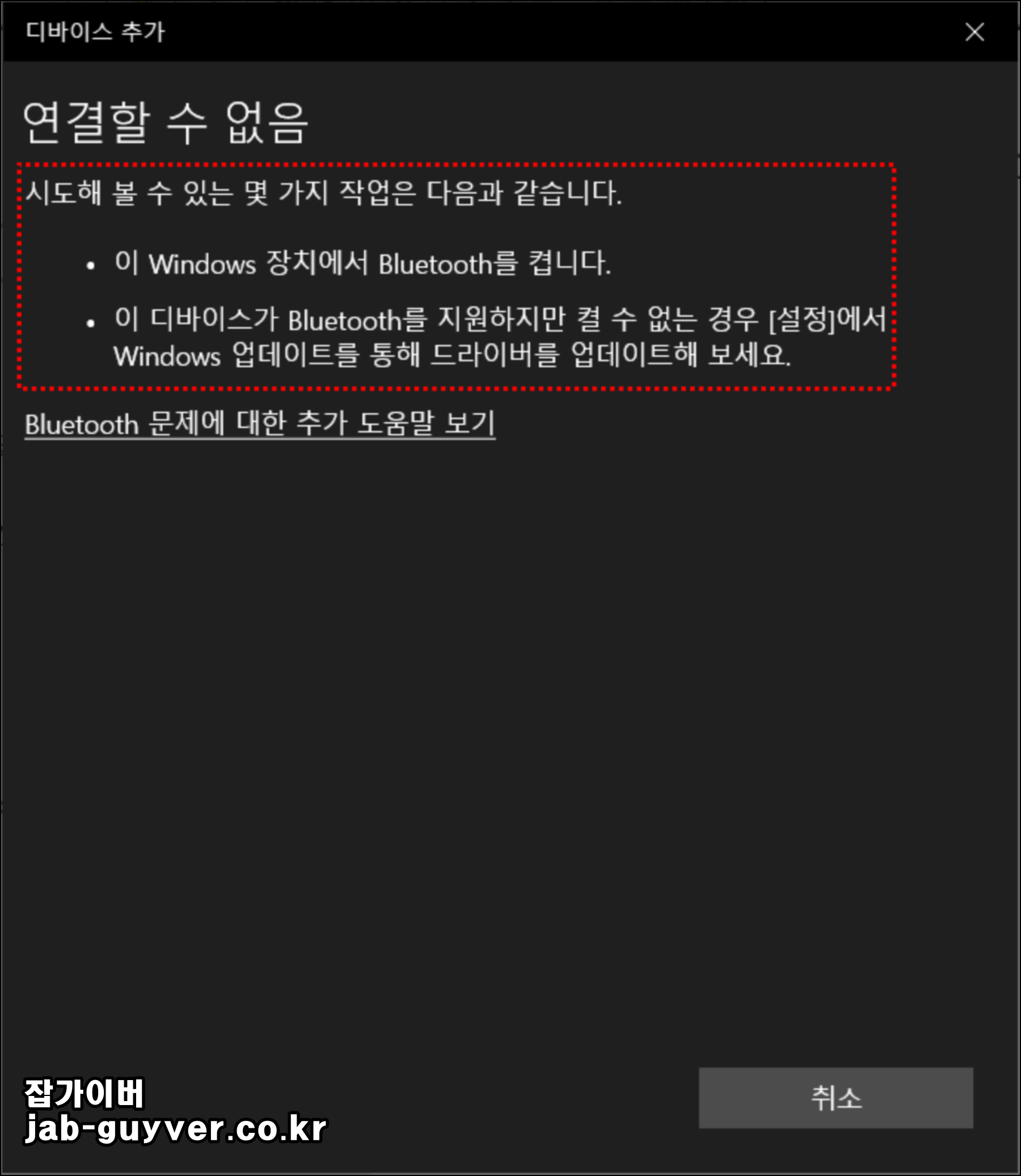 윈도우10 블루투스 연결 안 될 때 드라이브 다운로드