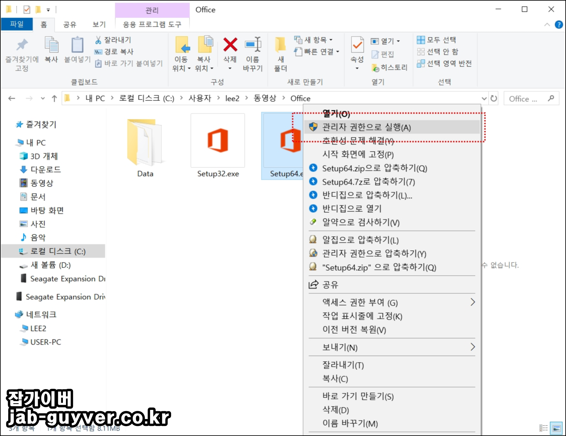설치시 설치파일을 마우스 우클릭 "관리자권한으로 실행"으로 설치하세요