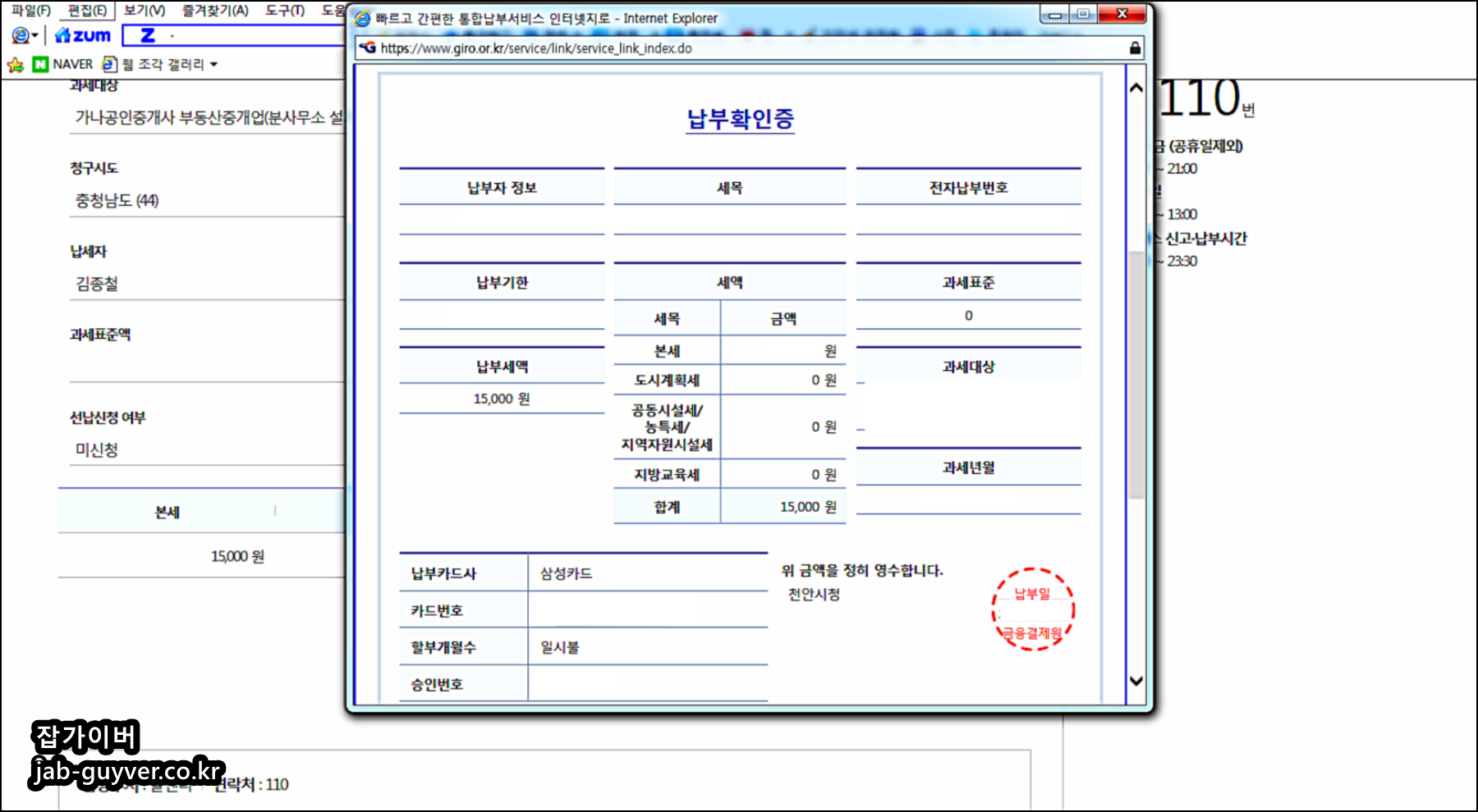 지방세 납부확인증 출력