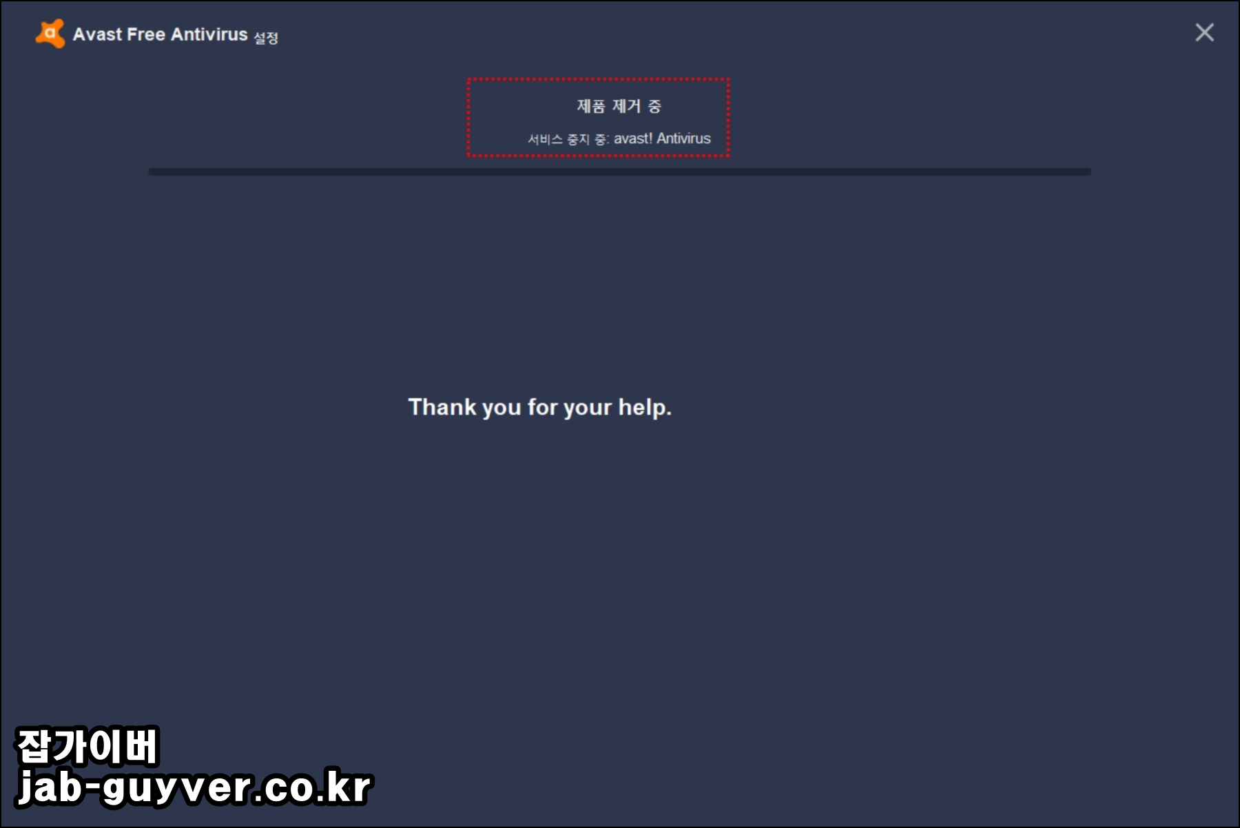 Avast 삭제 중 'UI failed to load' 오류 발생 시