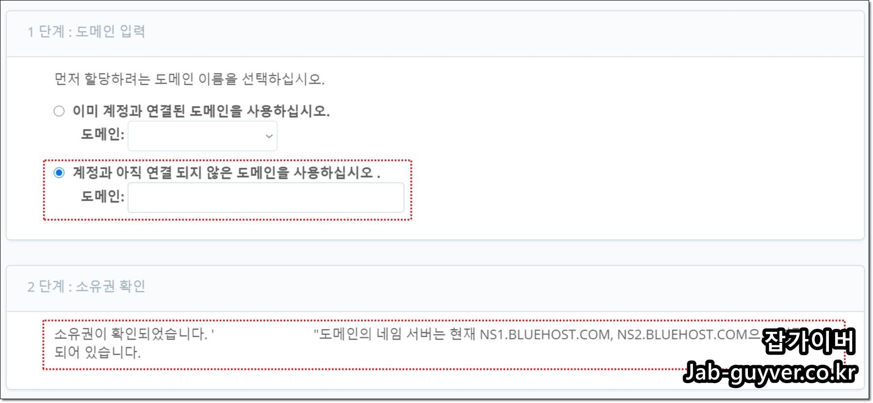 - 이미 블루호스트 계정에 연결된 도메인을 사용하는 경우