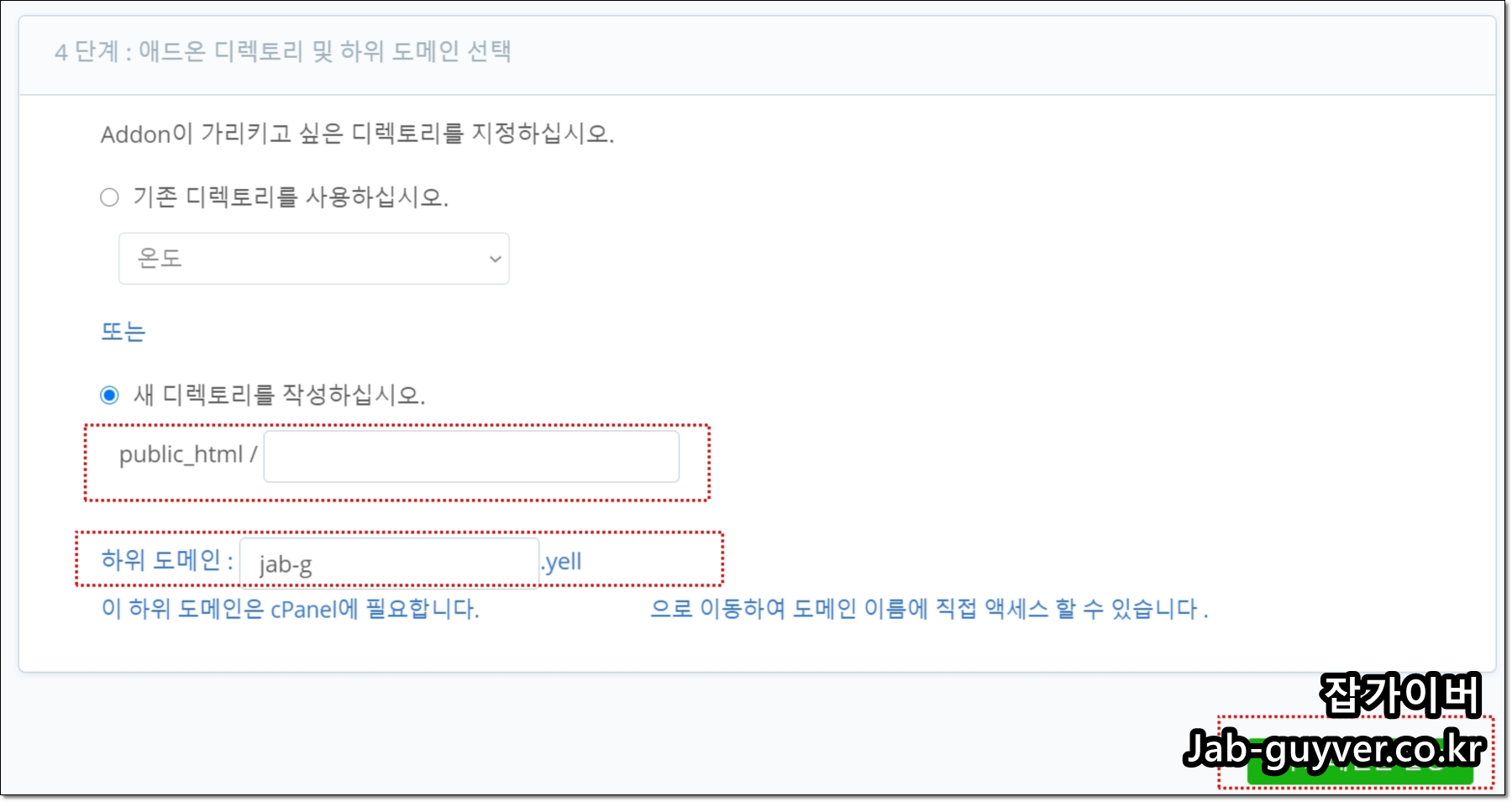 도메인 소유권 확인까지 끝나면, 하단에 블루호스트에서 사용할 디렉토리 경로와 함께 자동으로 생성된 하위 도메인(Subdomain) 정보가 보입니다.