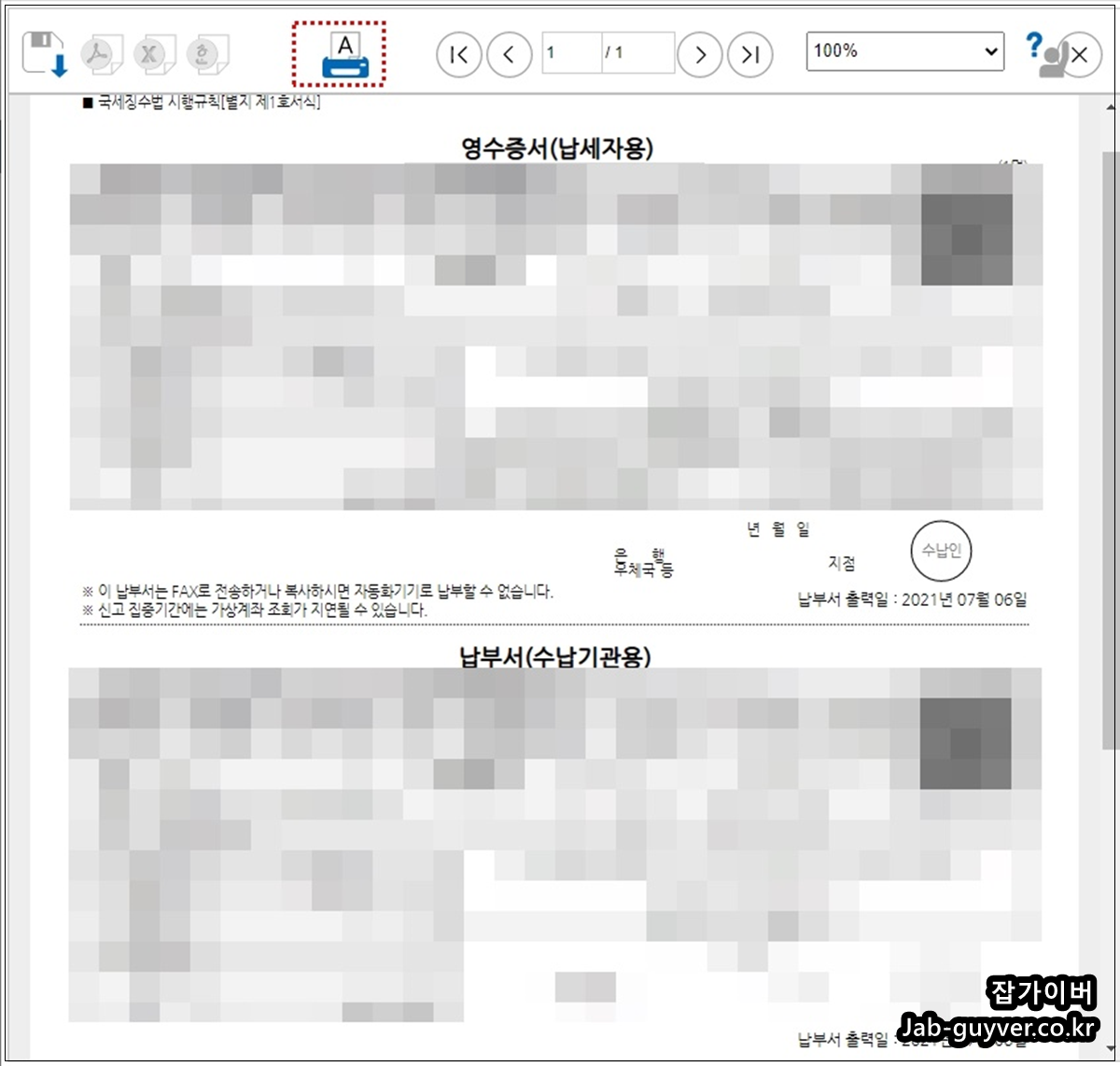 납부완료후에는 납부확인증을 출력할 수 있습니다.
