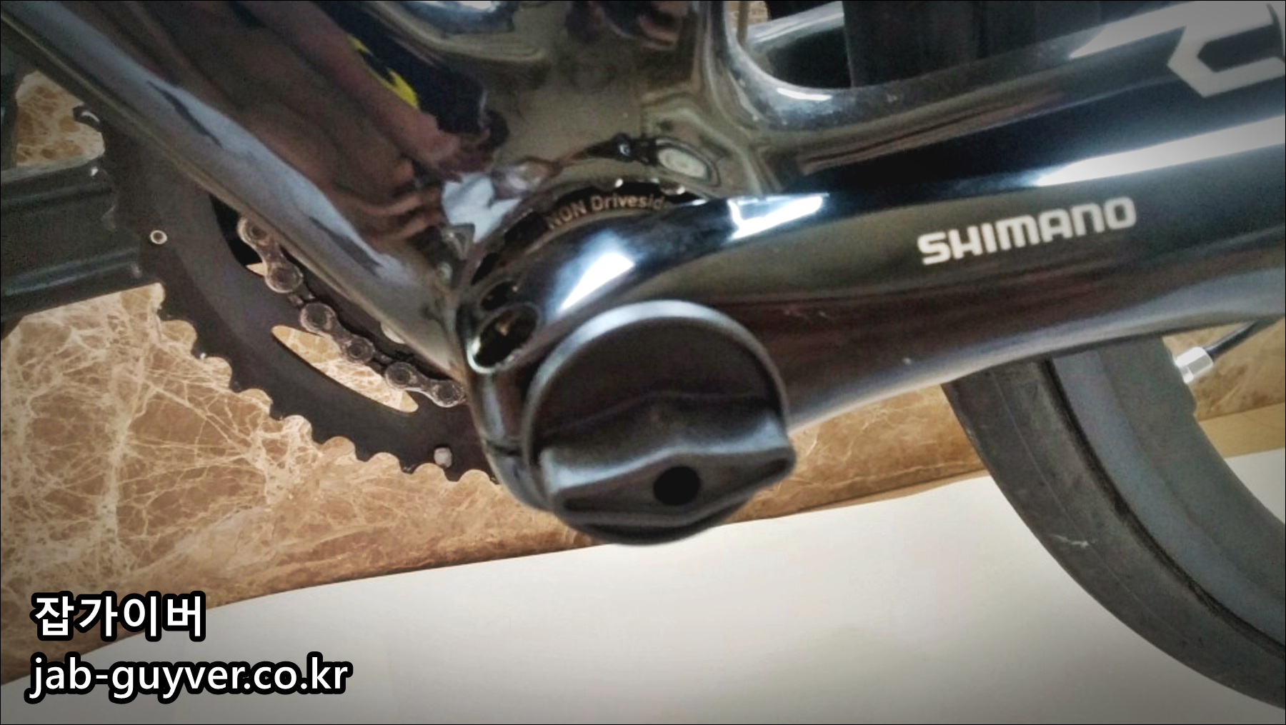 크랭크를 자전거 비비 "BB쉘"에 넣고 논드라이브 쪽 크랭크 암을 껴줍니다.