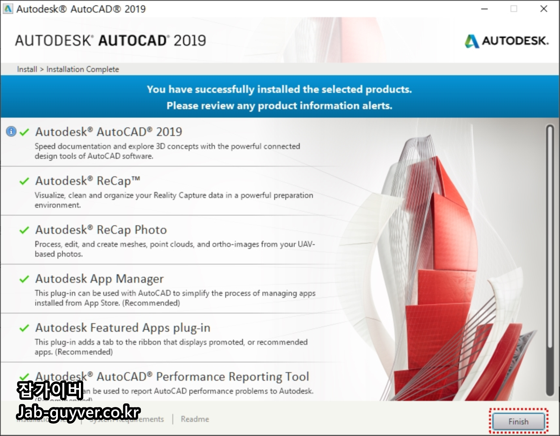 그렇게 오토캐드 설치는 별문제 없이 완료됩니다.