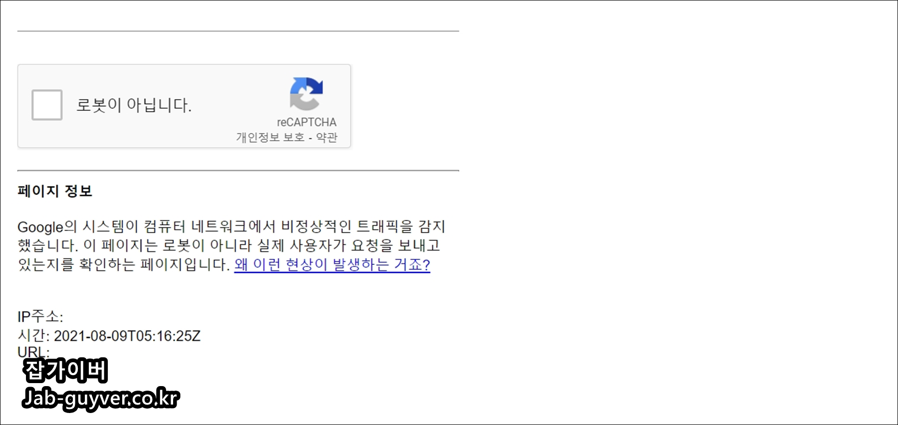 구글검색 로봇이 아닙니다. 시스템 컴퓨터 네트워크 비정상적인 트래픽 감지 - 노랗IT월드