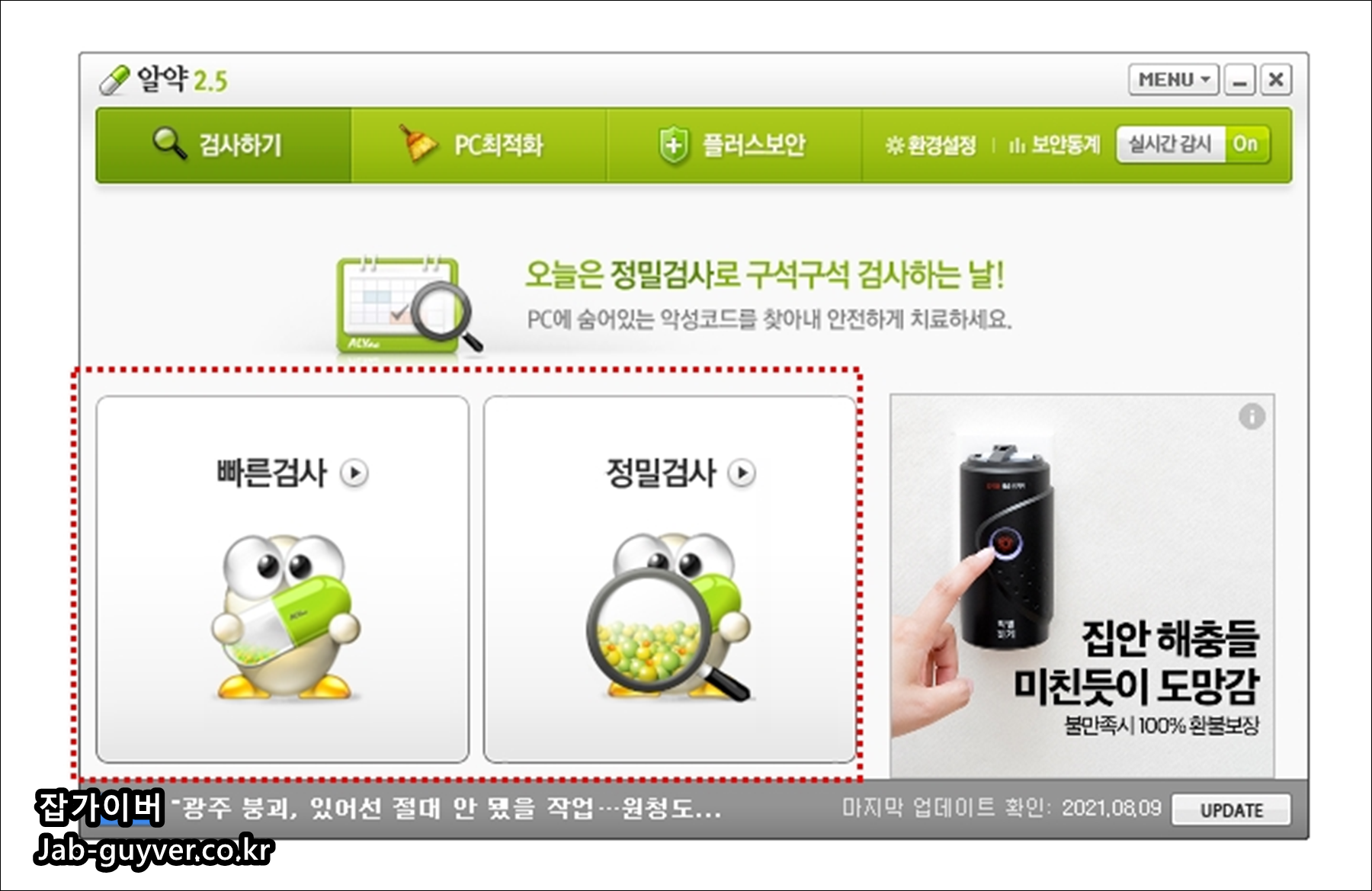 알약 컴퓨터 바이러스 검사 및 PC 최적화
