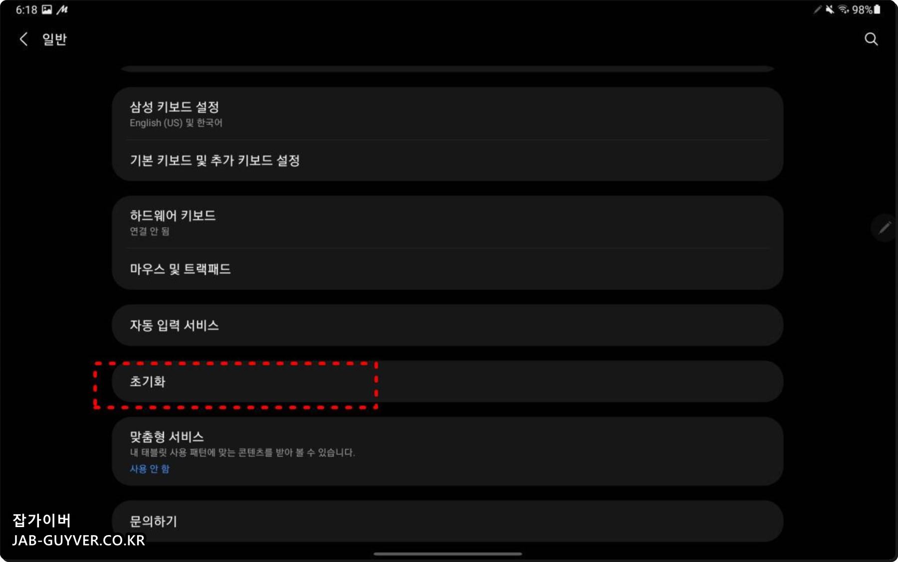 갤럭시탭s7 공장초기화 디바이스 초기화