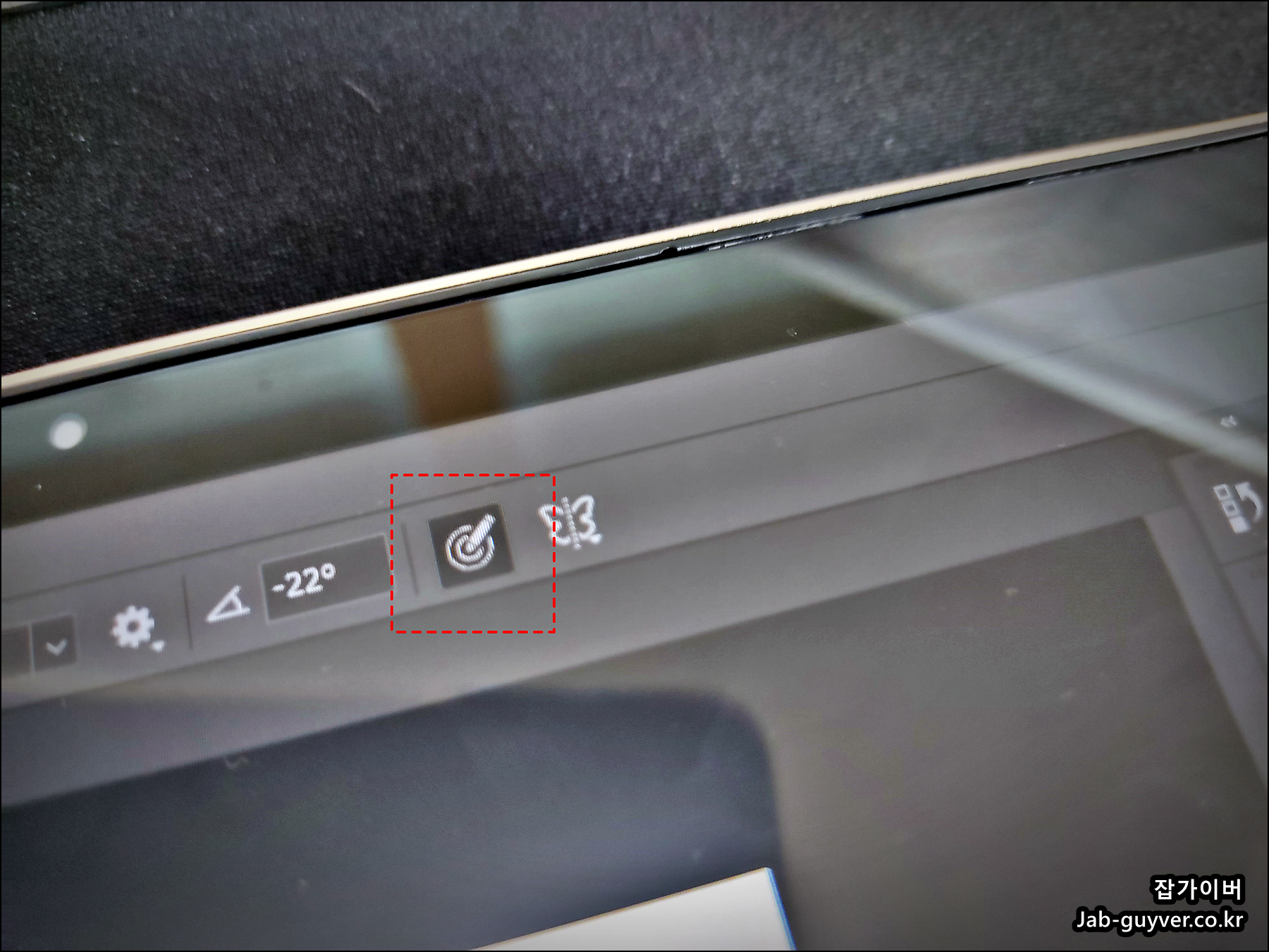 포토샵을 실행 후 상단 메뉴에 보면 보는것과 같은 필압 활성화 아이콘이 있으며 이를 선택해야합니다.
