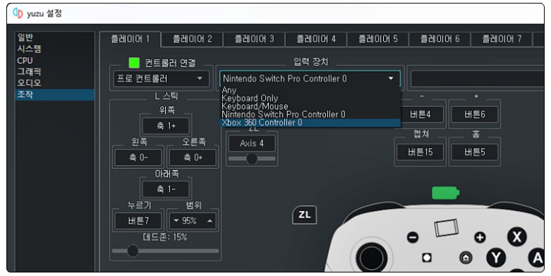 이후 연결된 게임의 컨트롤러를 설정합니다.