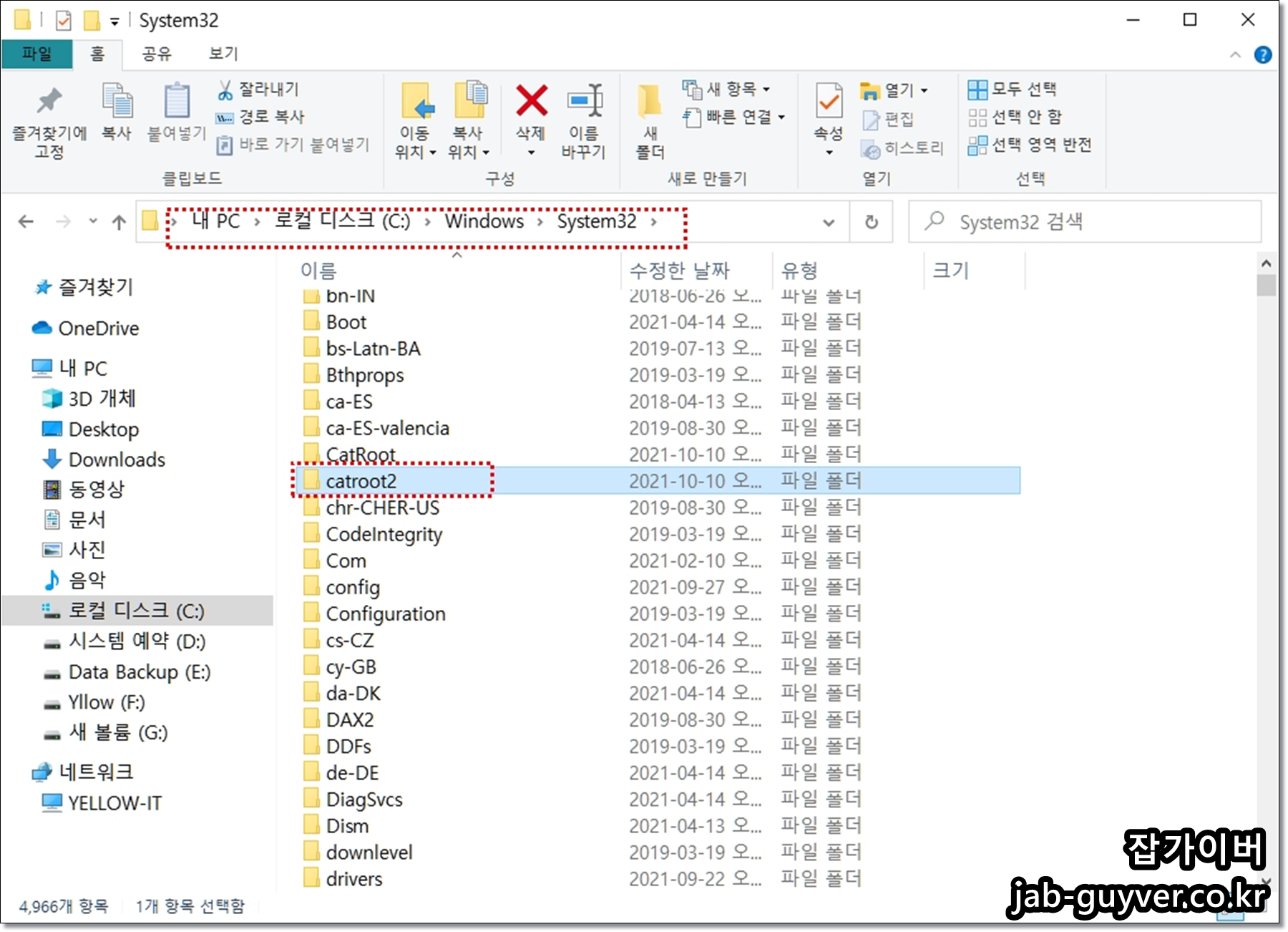 - C:\Windows\System32 경로에 있는 catroot2 폴더를 삭제합니다.