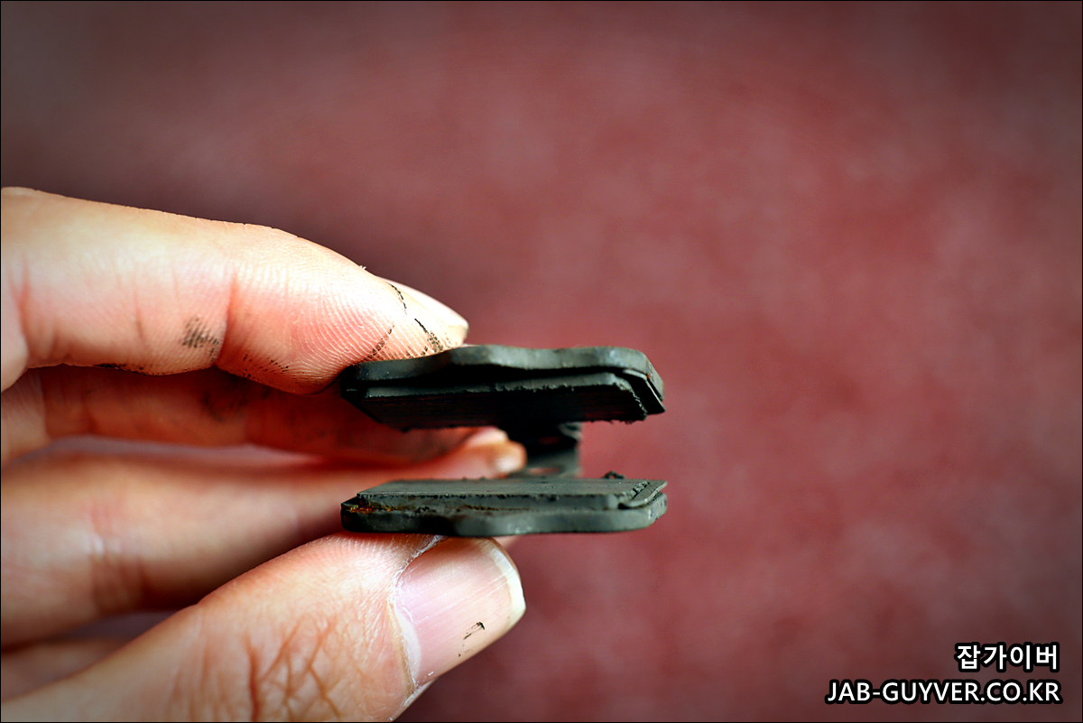 그렇게 분해한 디스크 브레이크 패드를 확인하니 아직 패드가 남아있는걸 볼 수 있습니다.