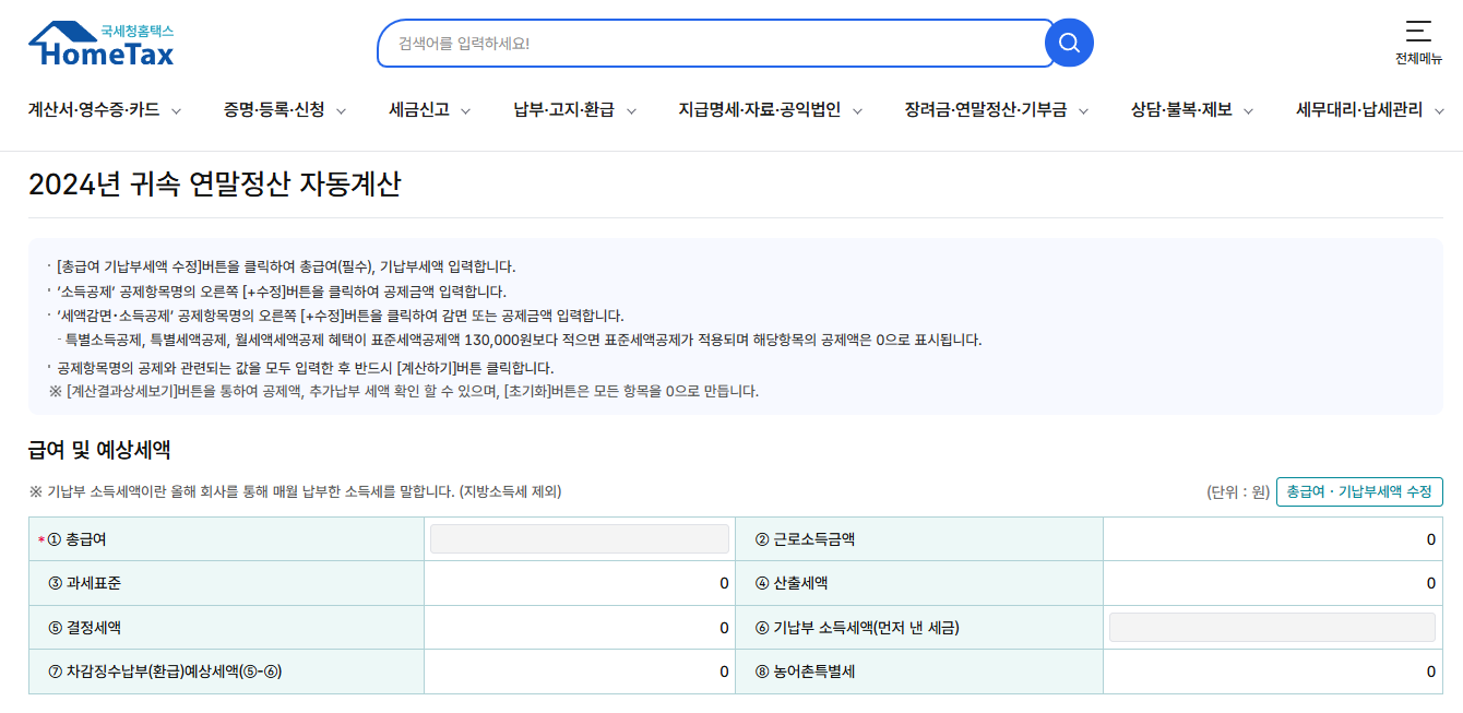 홈택스의 연말정산 자동계산은 기본적으로 납부자가 직접 입력한 자료를 근거로 세액을 계산하기 때문에 국세청 자료를 바탕으로 계산되는 세액과는 약간의 차이점은 있을 수 있습니다.