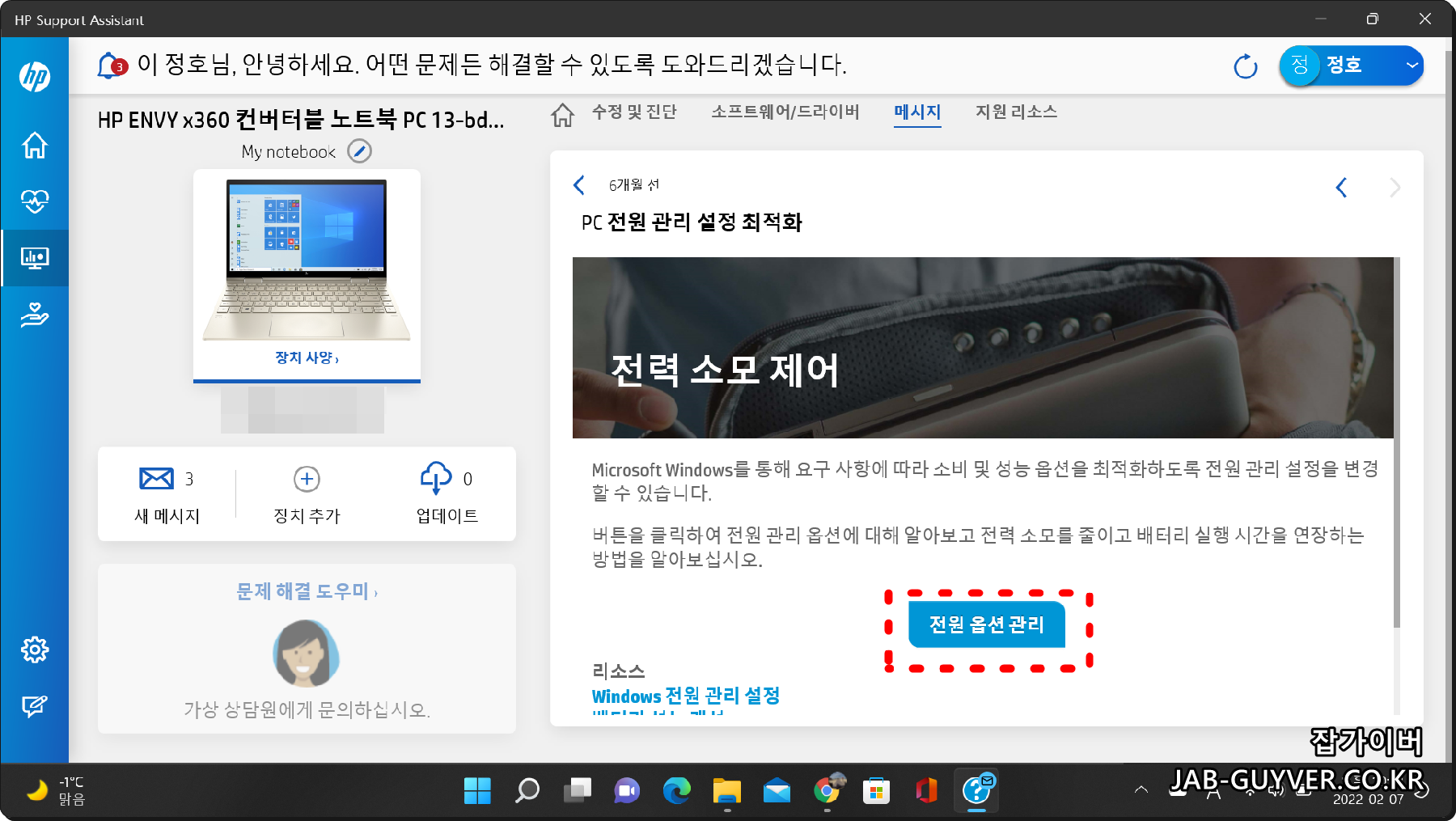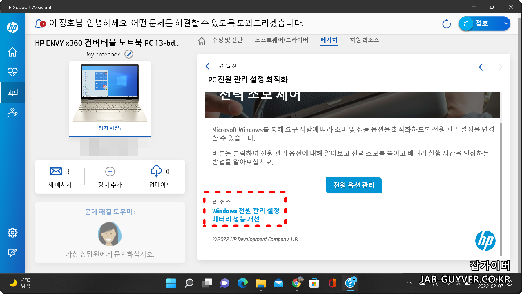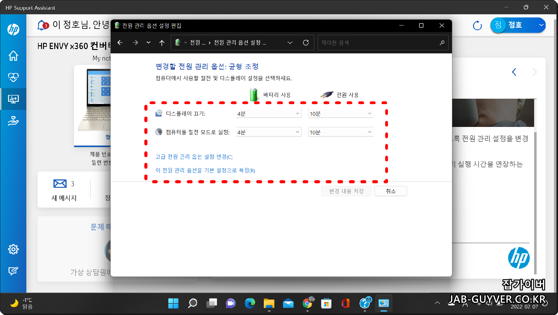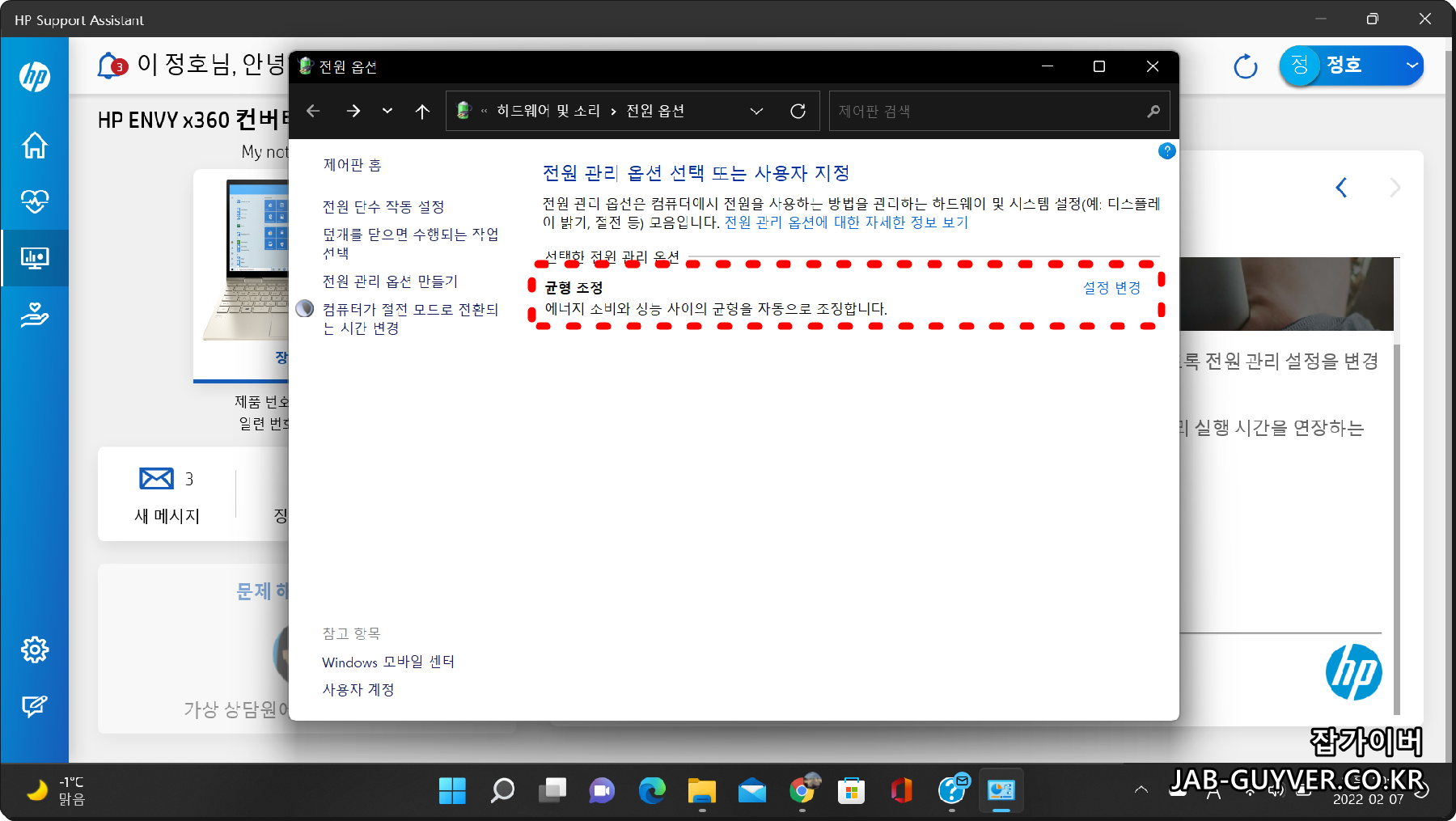 HP노트북 배터리 전력관리와 발열 조절