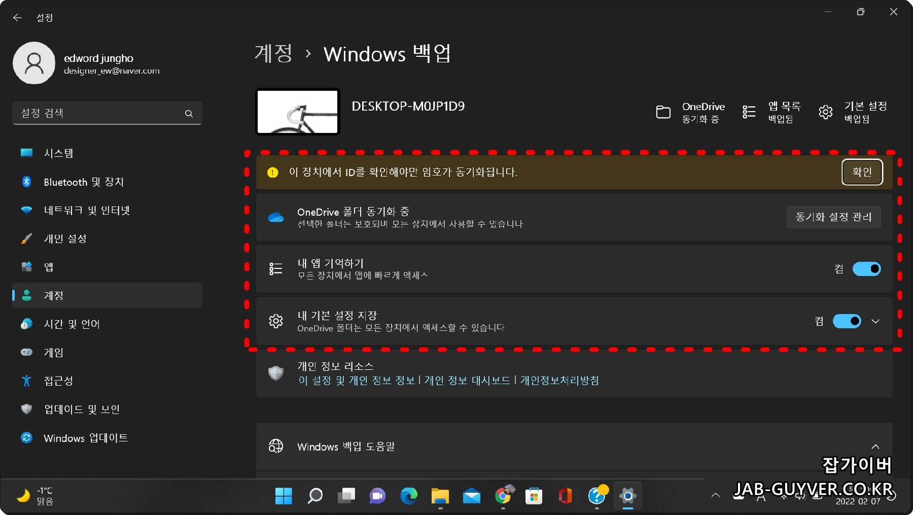 - OneDrive "온드라이브" 동기화 백업