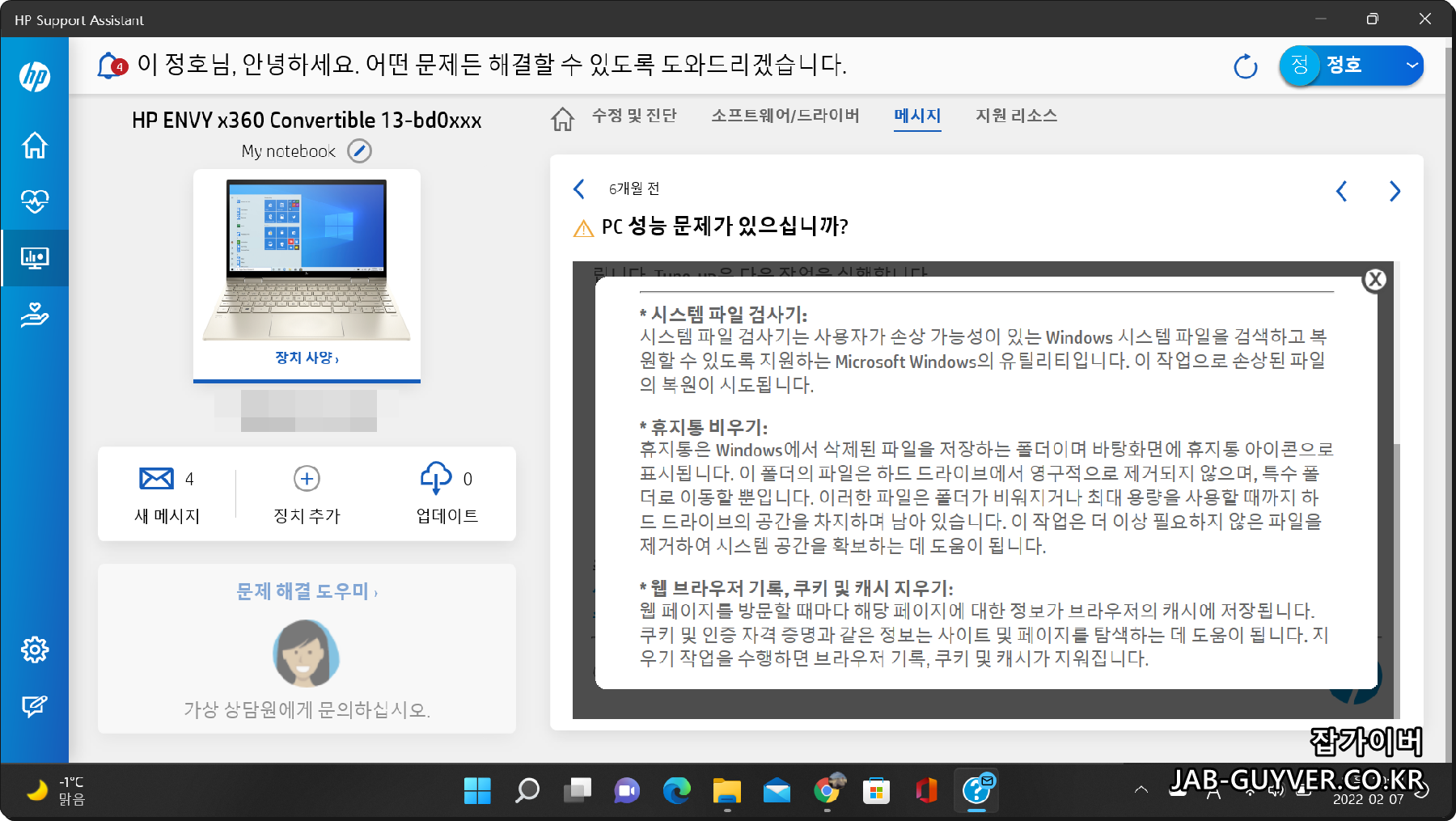 최근에 HP Envy X360 컨버터블 노트북으로 교체하면서 10년 가까이 된 예전 노트북과 비교해 보면 전반적인 성능도 많이 올라갔지만, 특히 HP Support Assistant가 꽤 많이 달라졌다는 느낌이 들었습니다.