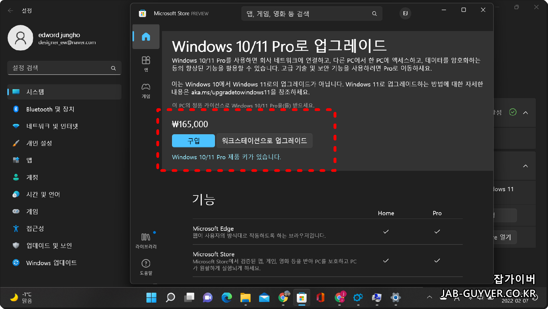 윈도우11 Pro로 업그레이드할 필요가 있는지 고민됩니다.