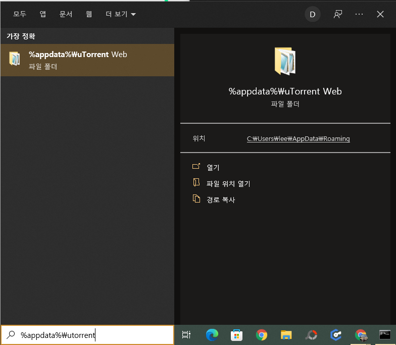 - %appdata%\utorrent 폴더 삭제 후 프로그램 재설치