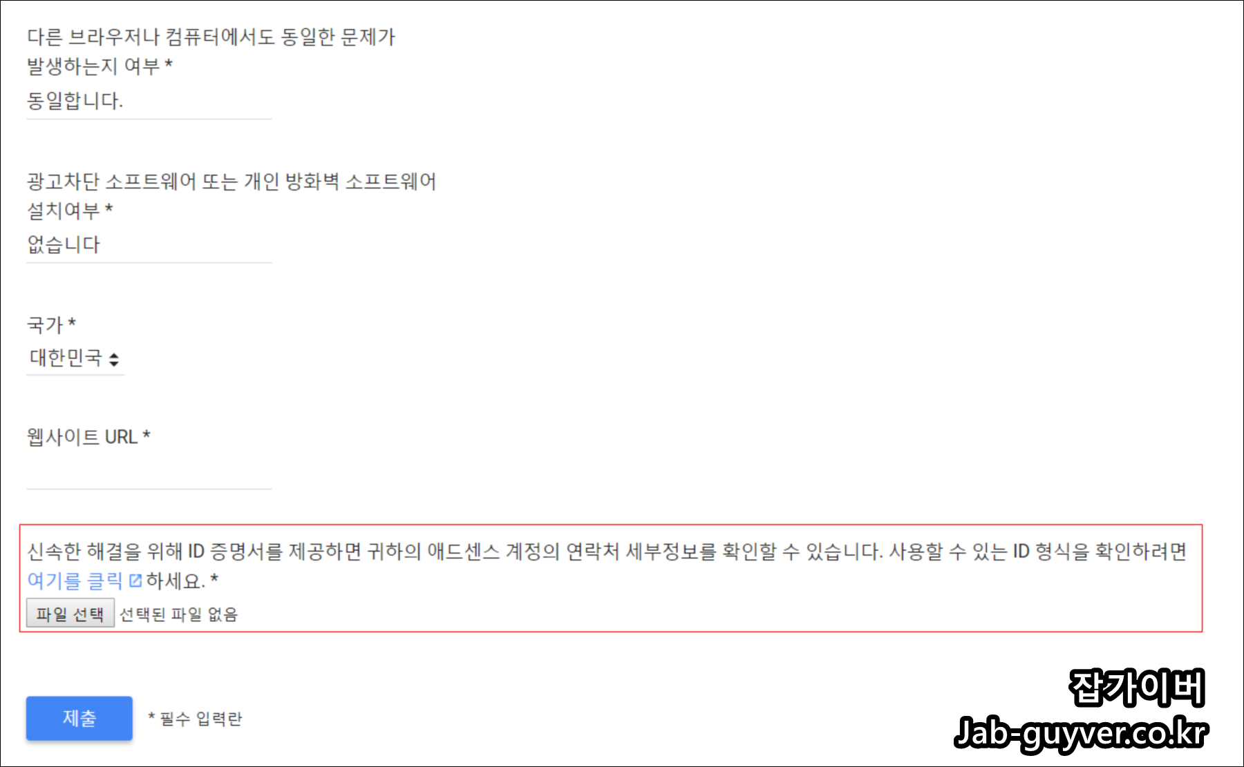 애드센스 무한검토가 오래된다면 마냥 기달리지 말고 애드센스 고객센터에 직접 현재 오류상태를 제출합니다.