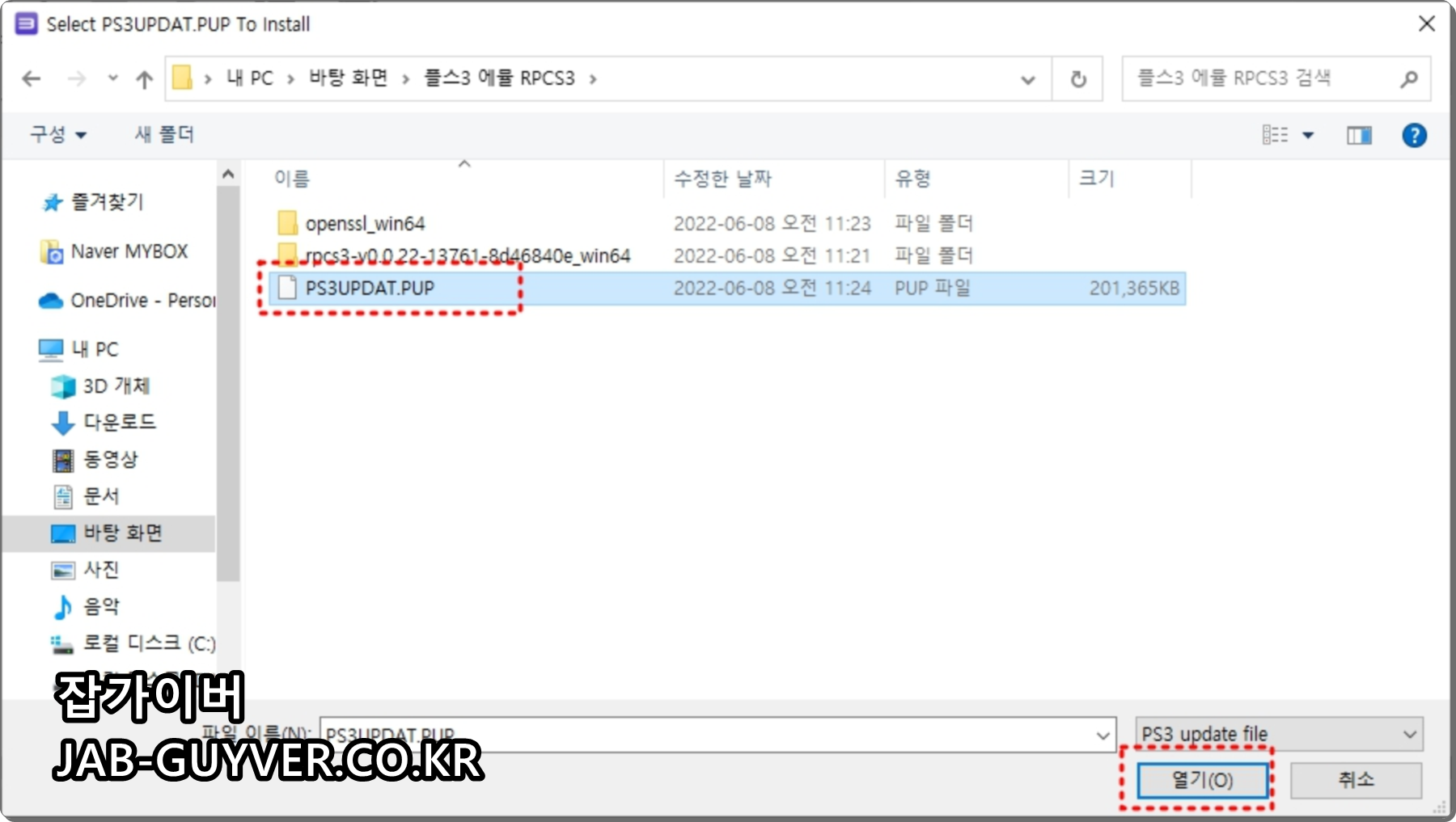 다운로드 한 "PS3UPDAT.PUP"파일을 선택해서 불러옵니다.