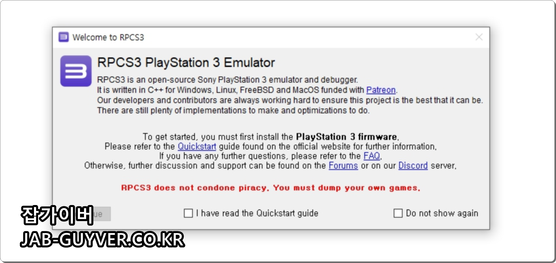 RPCS3 PlayStation3 Emulator 실행하기 위해서 동의를 해야합니다.