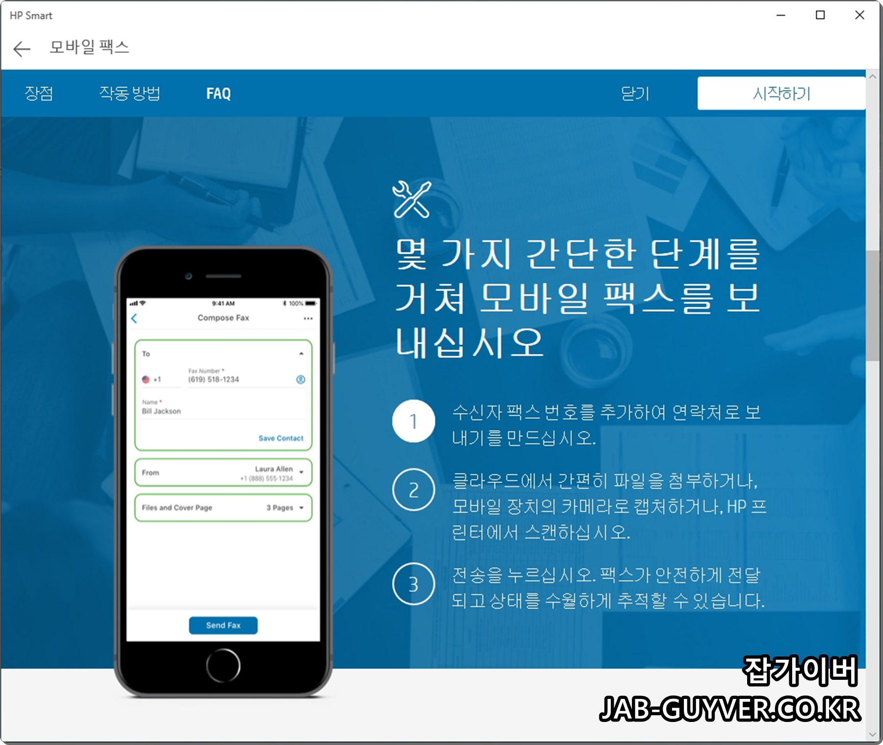 HP프린터 모바일팩스 및 컴퓨터로 팩스 보내는 방법 FAQ