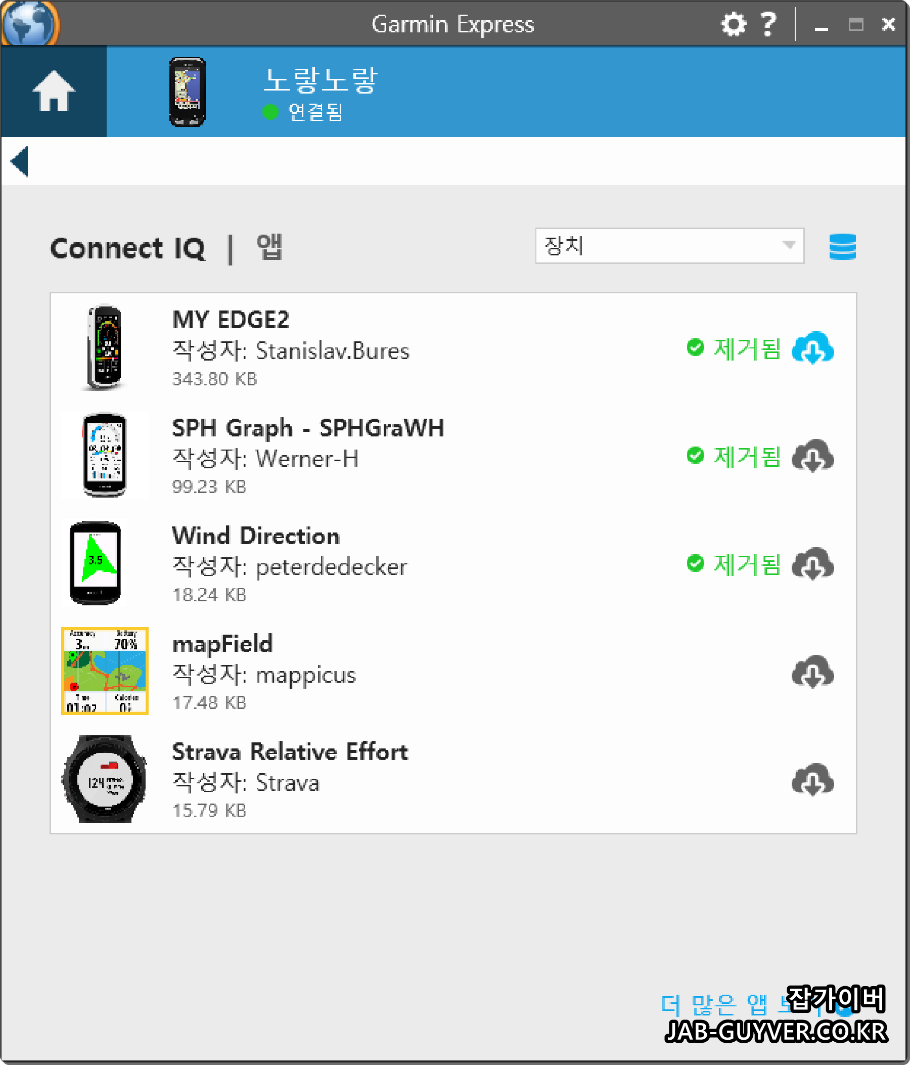 원하는 Connect IQ 앱을 설치하거나 삭제합니다.
