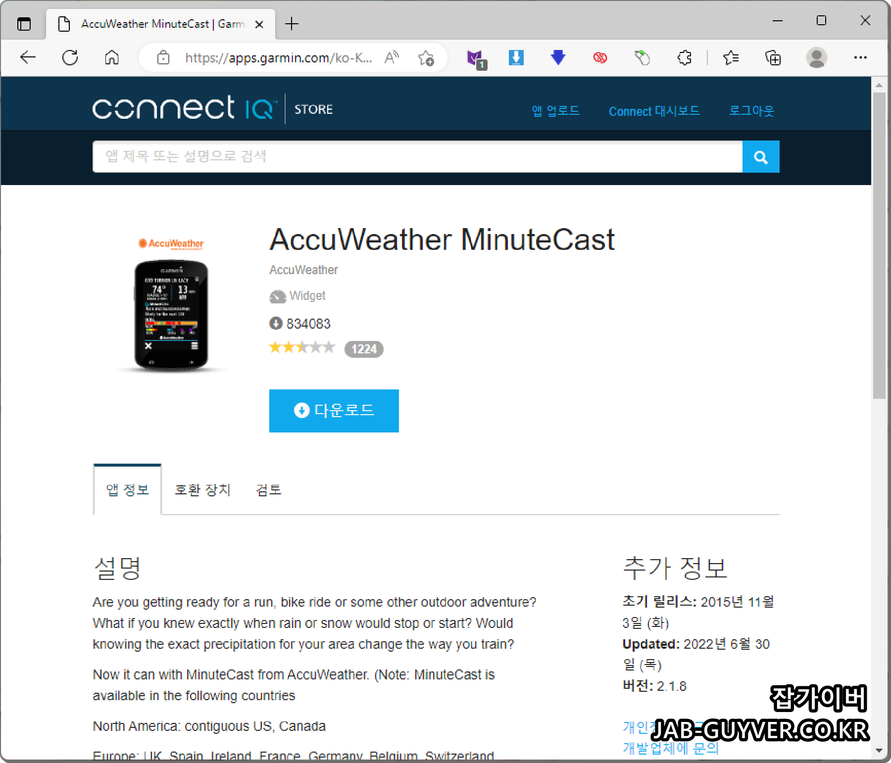 - 가민 워치 또는 엣지에 설치 가능한 추가 앱, 워치페이스, 데이터필드 등을 제공