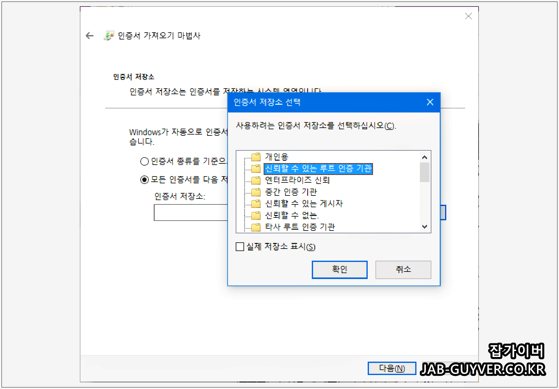 신뢰할 수 있는 루트인증기간 인증서 추가
