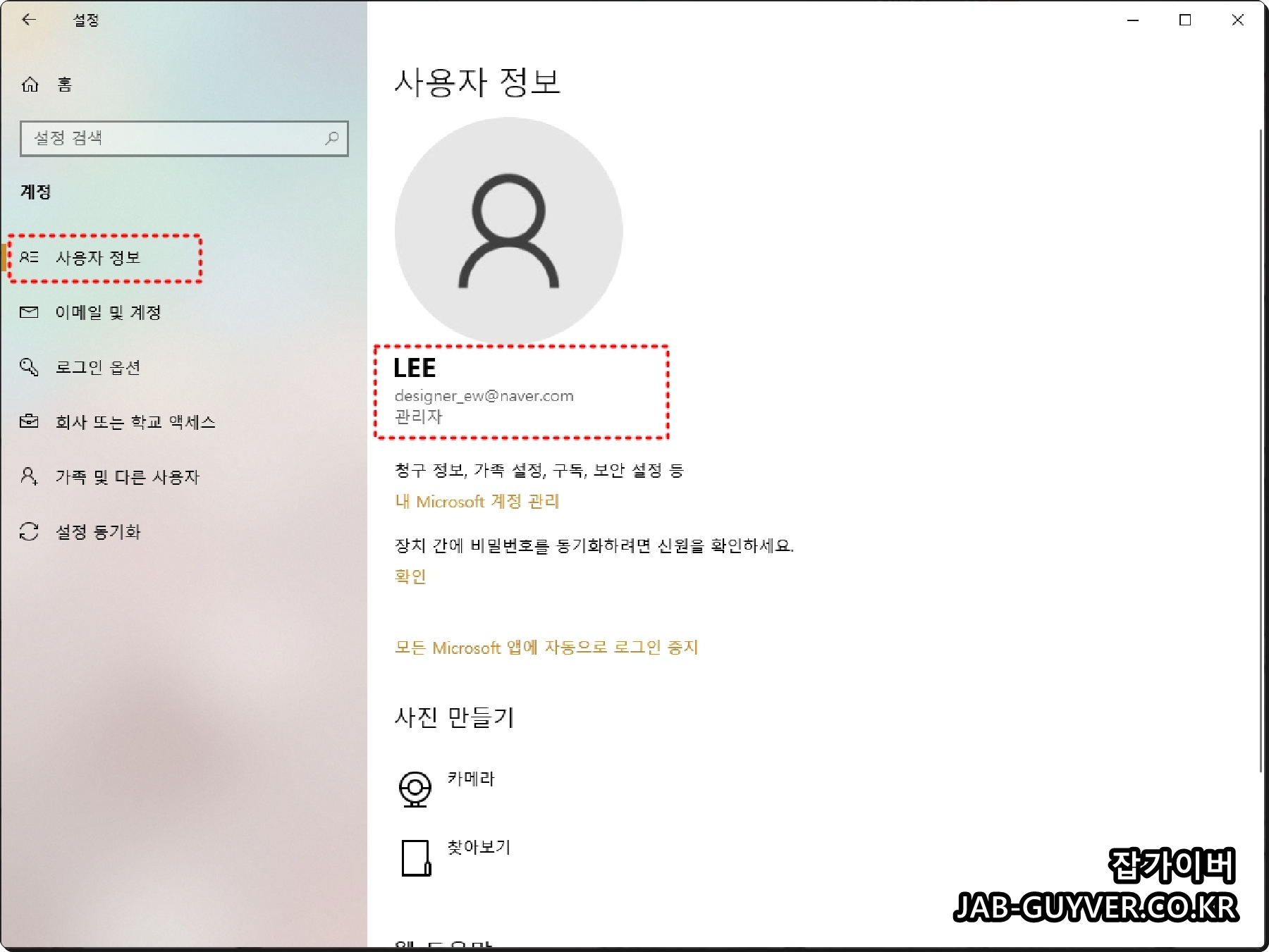 계정 - 사용자 정보를 확인하면 현재 관리자계정으로 부팅된 상태임을 확인할 수 있습니다.