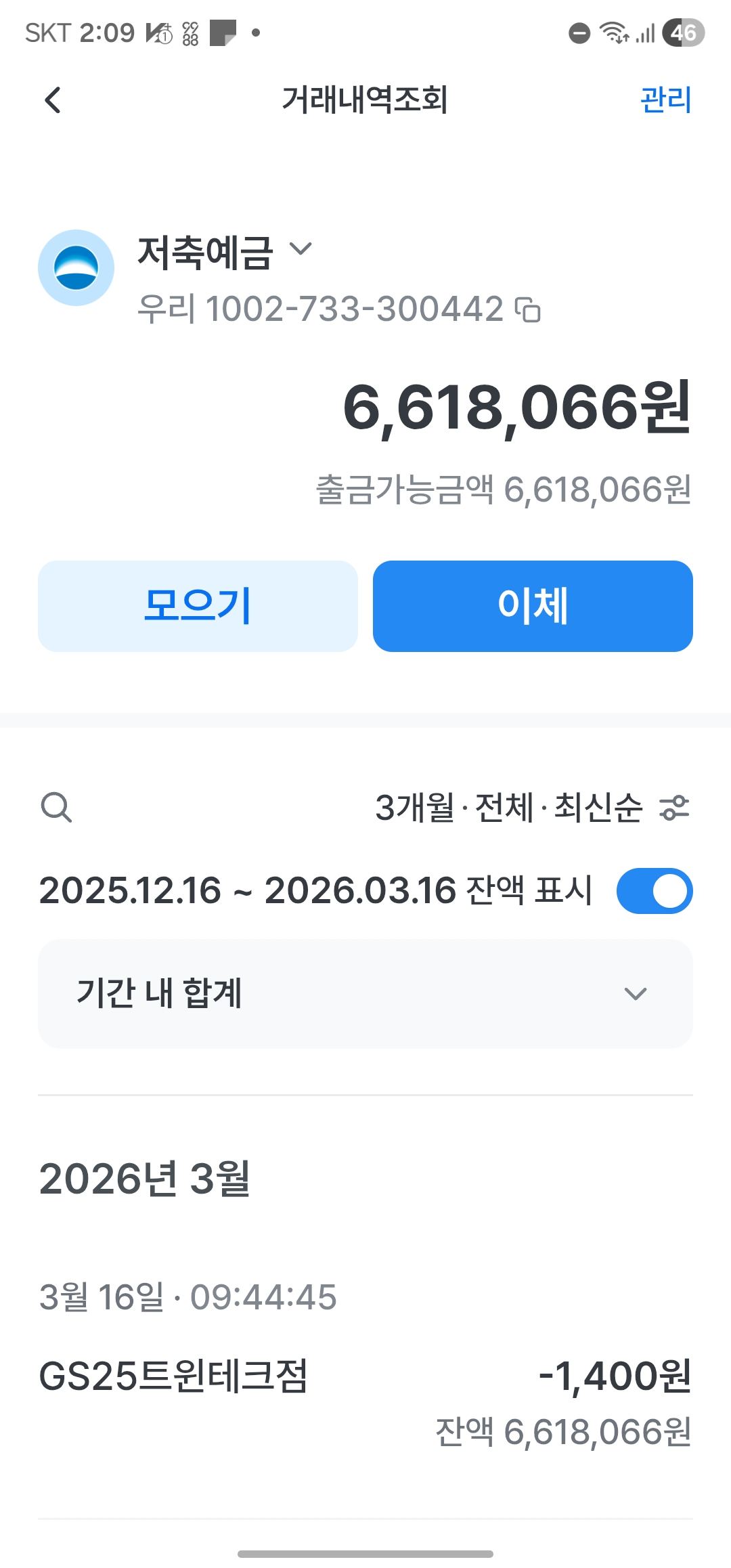 요즘은 앱에서도 거래내역 조회가 잘 됩니다.