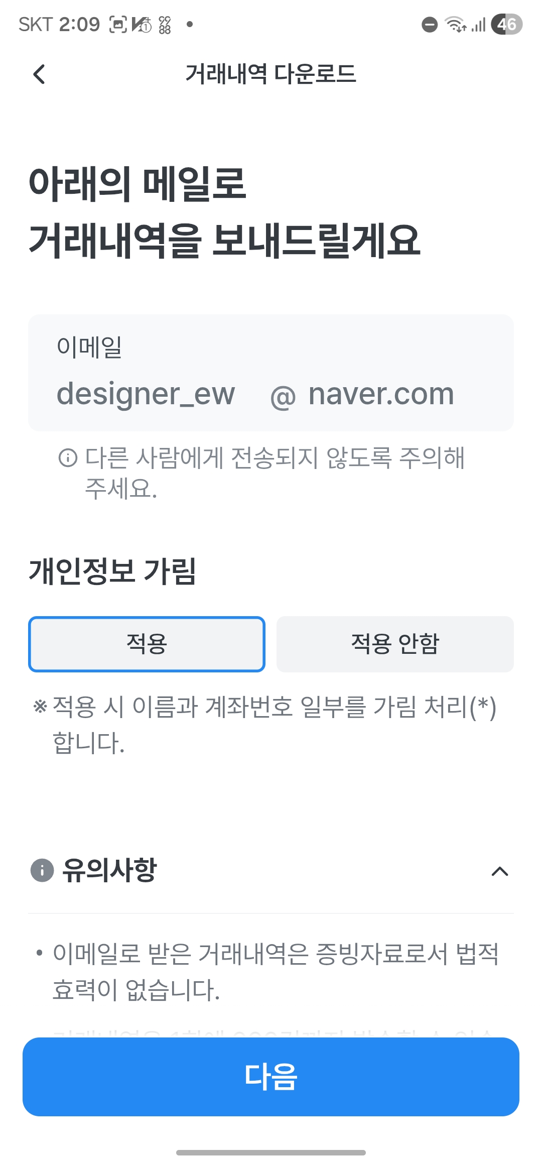 개인정보 보호 정책 때문에 일부 항목이 마스킹될 수 있습니다. 제출처에서 전체 표시가 꼭 필요하다면 은행 창구 발급이나 별도 증명서 메뉴를 확인하는 편이 좋습니다.