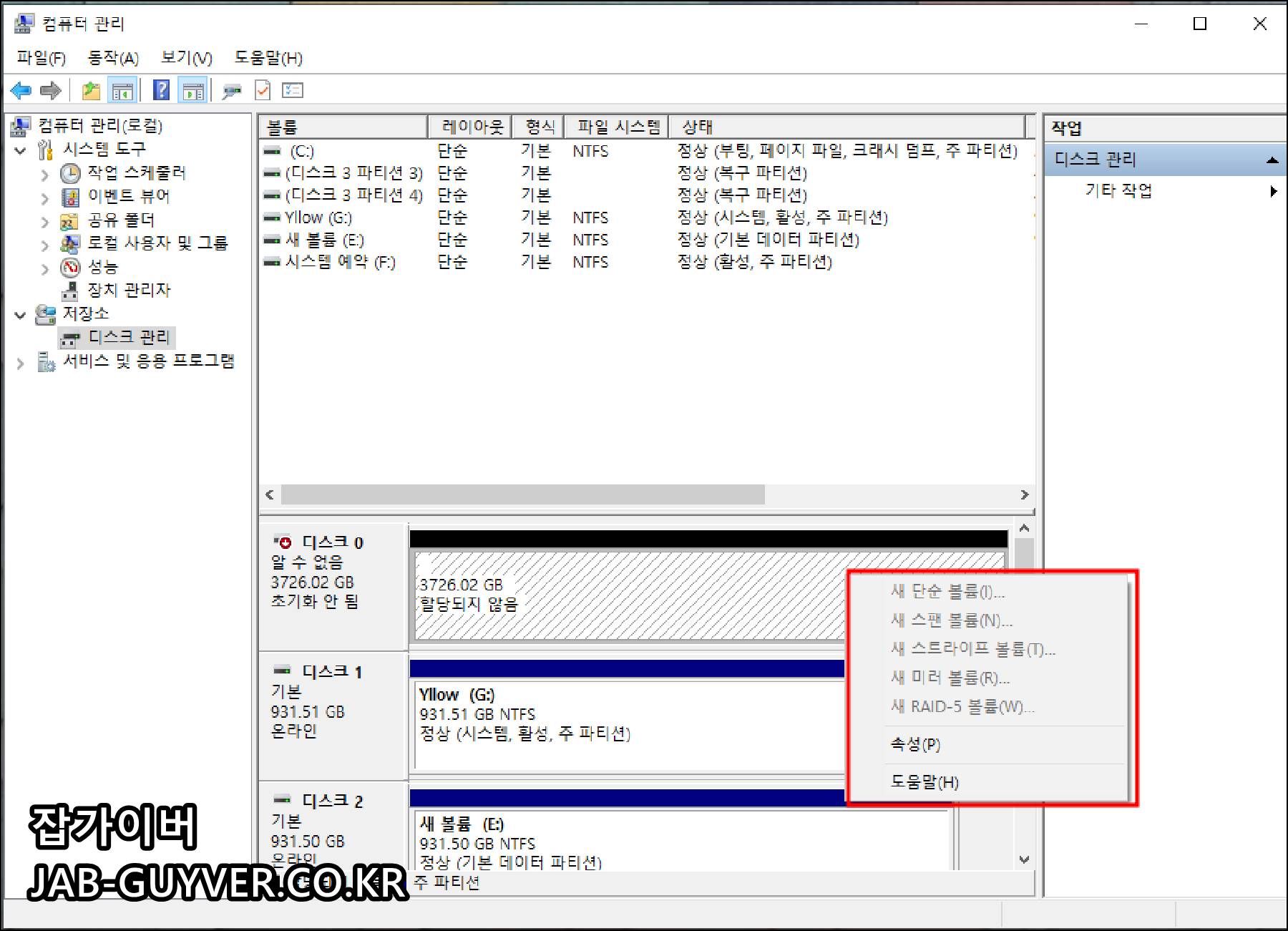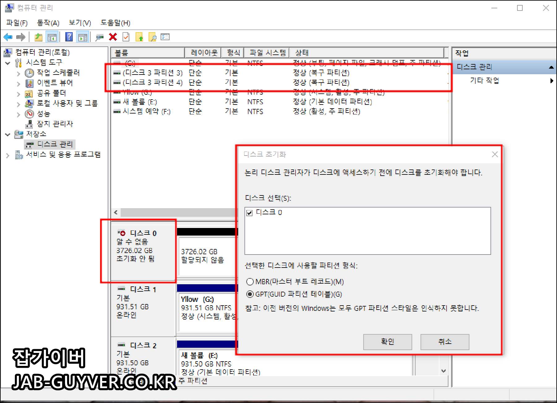 하드디스크 및 SSD를 컴퓨터에 장착 후 파티션활성화 인식방법은 위 내용을 참고하시고 하드디스크 및 SSD가 인식되지 않을 때 케이블 문제를 확인하고 해결하는 방법을 중심으로 실제 경험과 함께 정리해보았습니다.