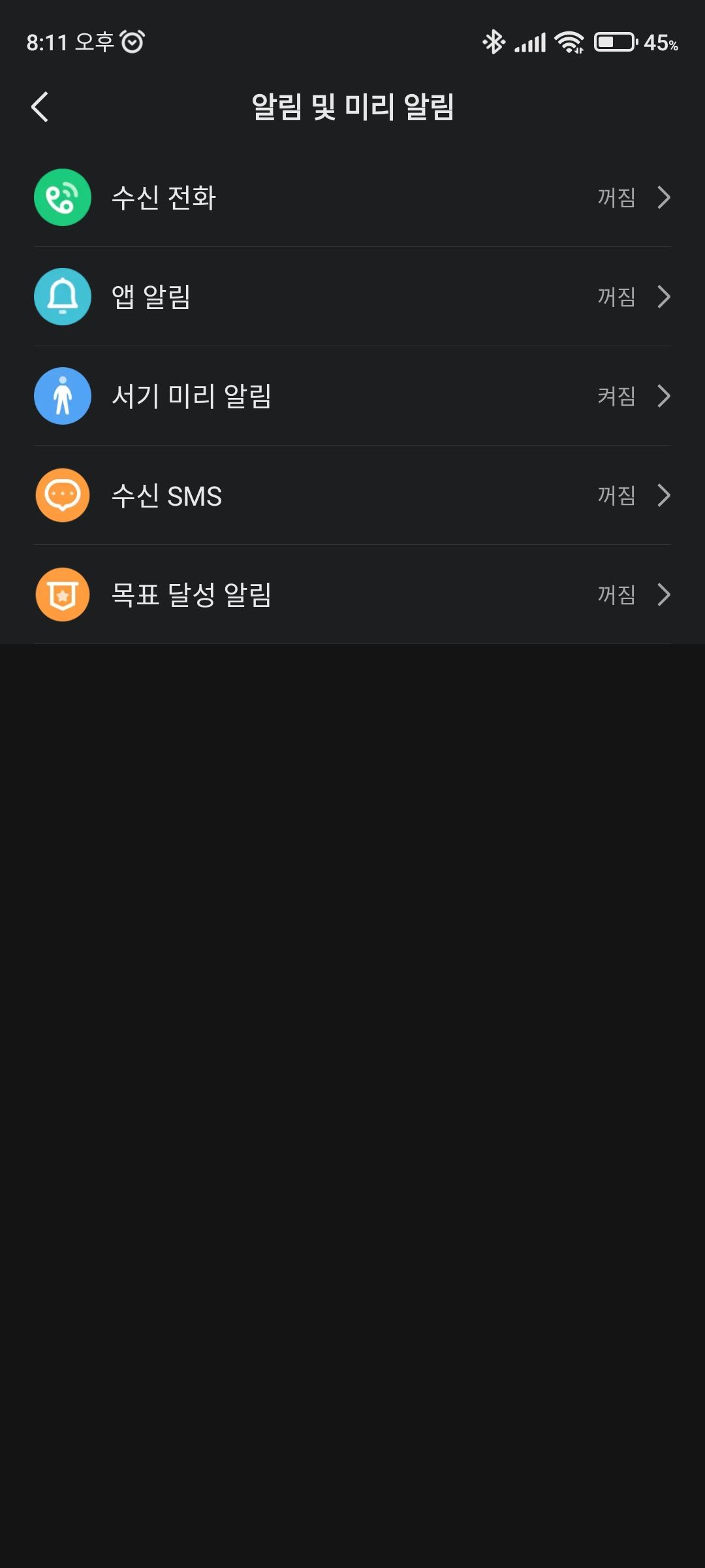 배터리를 오래 쓰고 싶다면 모든 기능을 다 켜기보다는, 꼭 필요한 기능만 남기고 정리하는 편이 좋습니다. 저는 어메이즈핏 GTS4 미니 카카오톡 알림은 유지하면서 아래처럼 쓰고 있습니다.