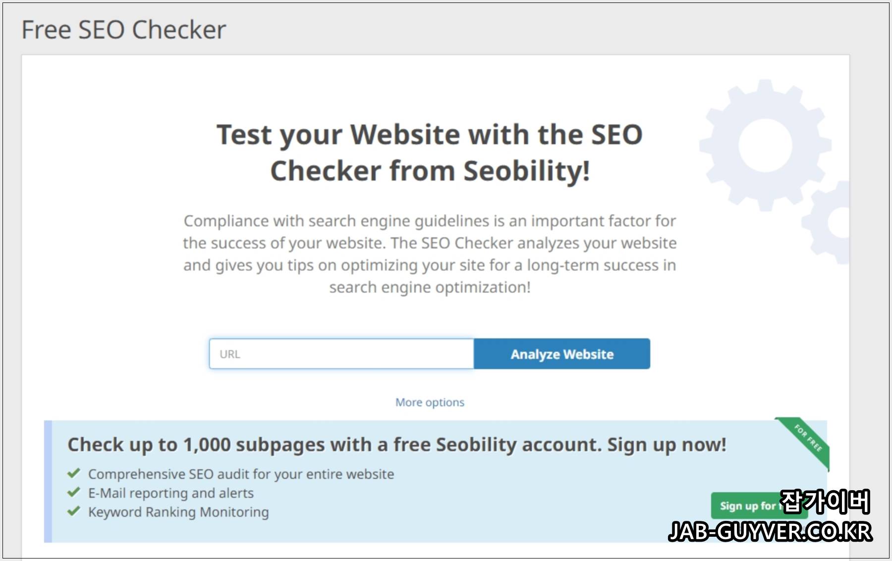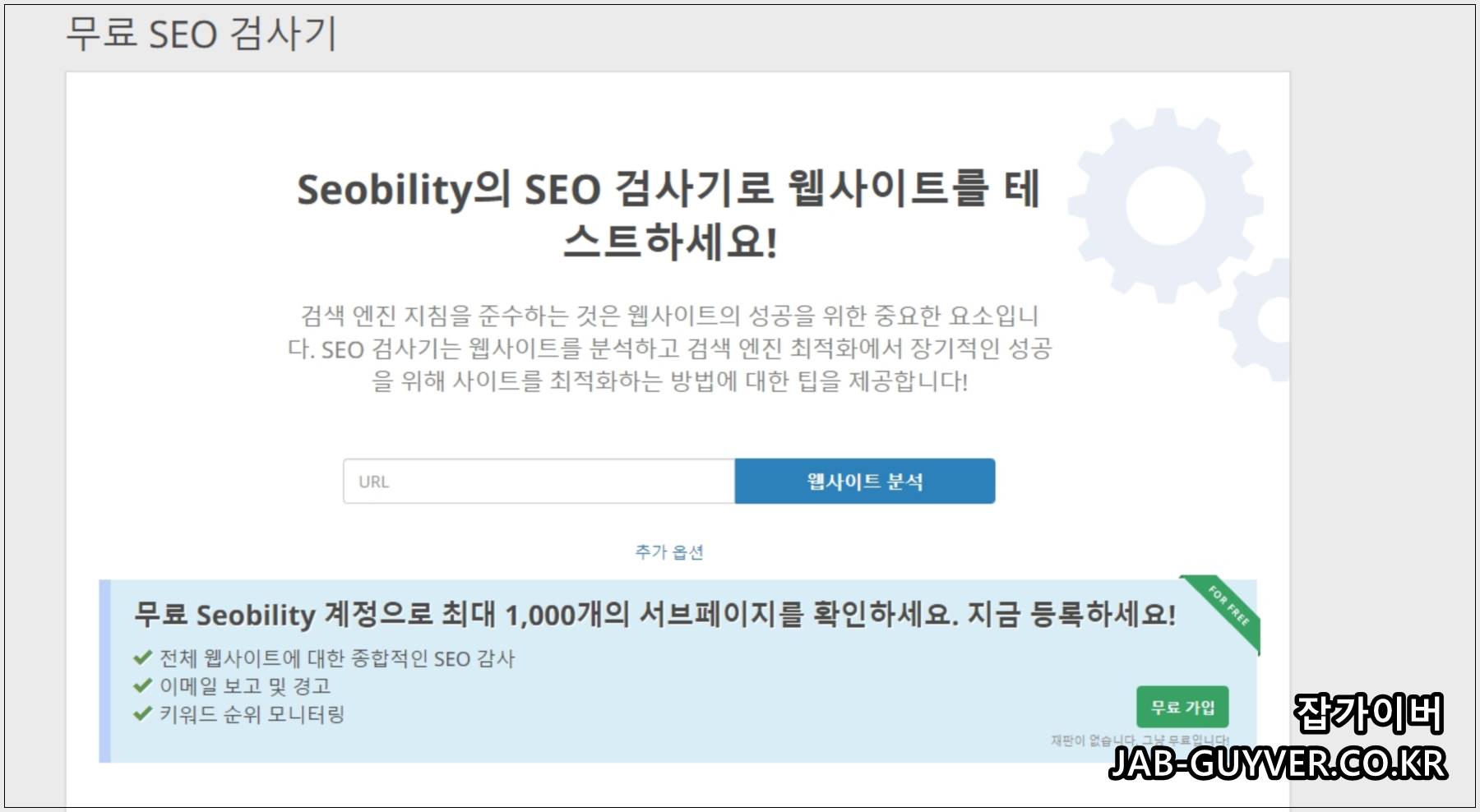 다음은 무료로 SEO 검사가 가능한 Free SEO Checker 기능을 통해 인터넷검색엔진최적화에 놓친 부분은 없는지 확인합니다.