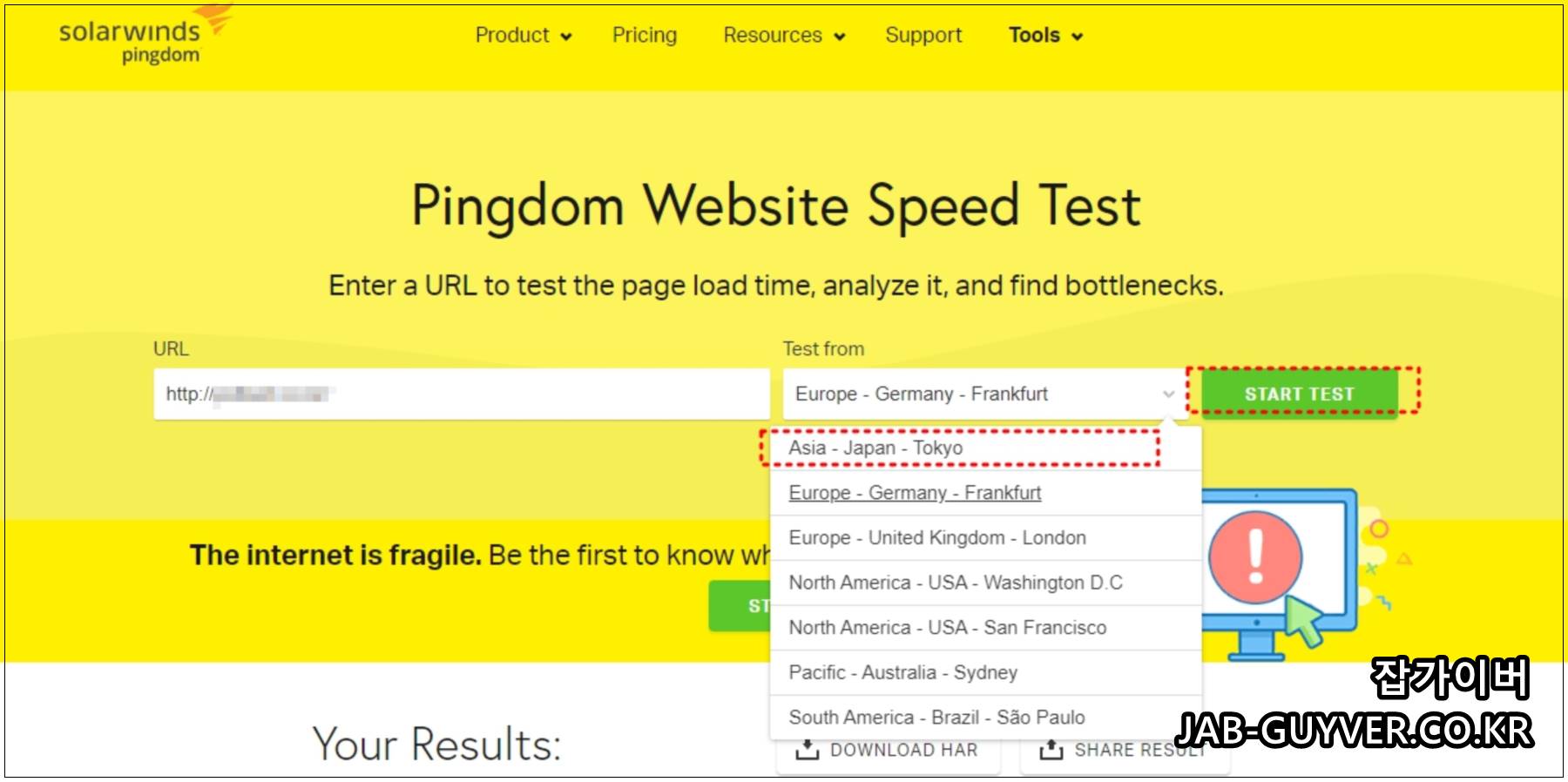 우선 웹사이트의 속도틀 테스트할 수 있는 사이트는 많이 있지만 그중에서도 Pingdom 사이트를 가장 많이 사용합니다.