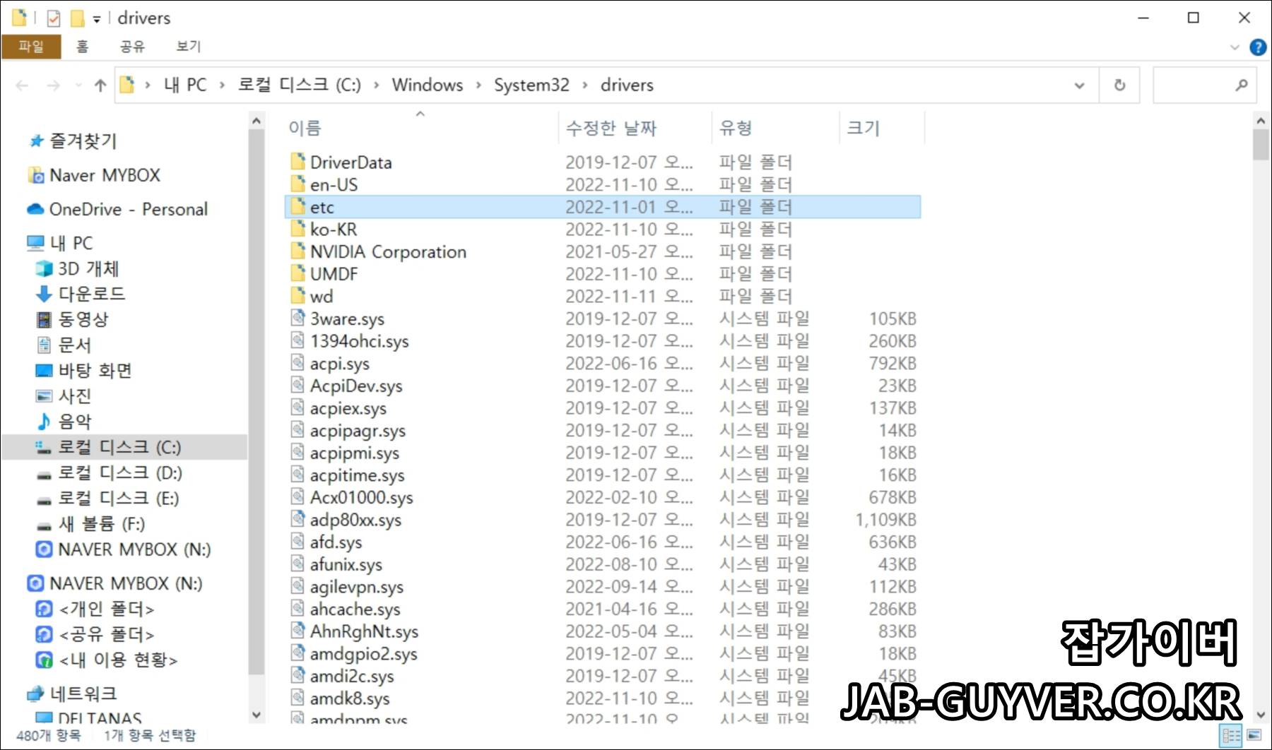 파일 탐색기로 etc 폴더가 안 보일 때 어떻게 하나요?