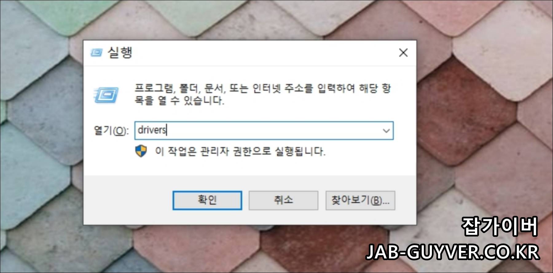내 PC에서 직접 들어가도 되고, 실행 창(Win + R)에서 drivers 입력 후 etc 폴더로 들어가도 됩니다.