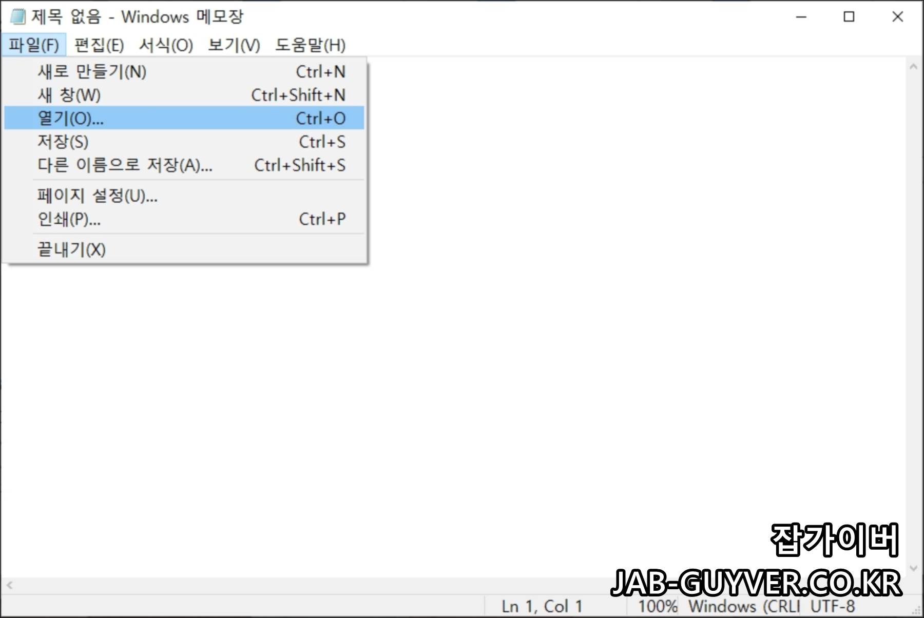 메모장을 관리자 권한으로 실행한 다음, 열기로 hosts 파일을 직접 불러와 수정 후 저장합니다.