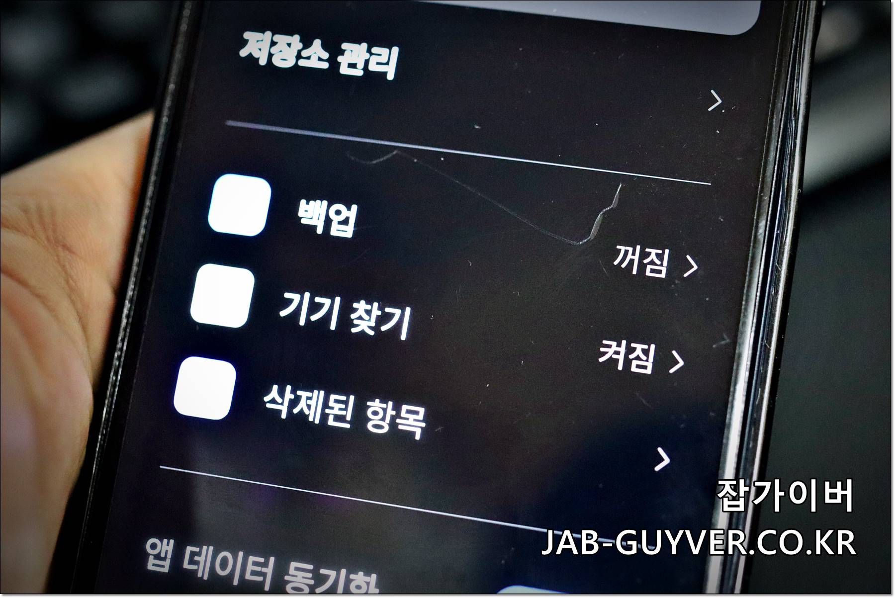 저장소 관리를 통해 백업 및 기기 찾기 등을 끄거나 킬 수 있습니다.