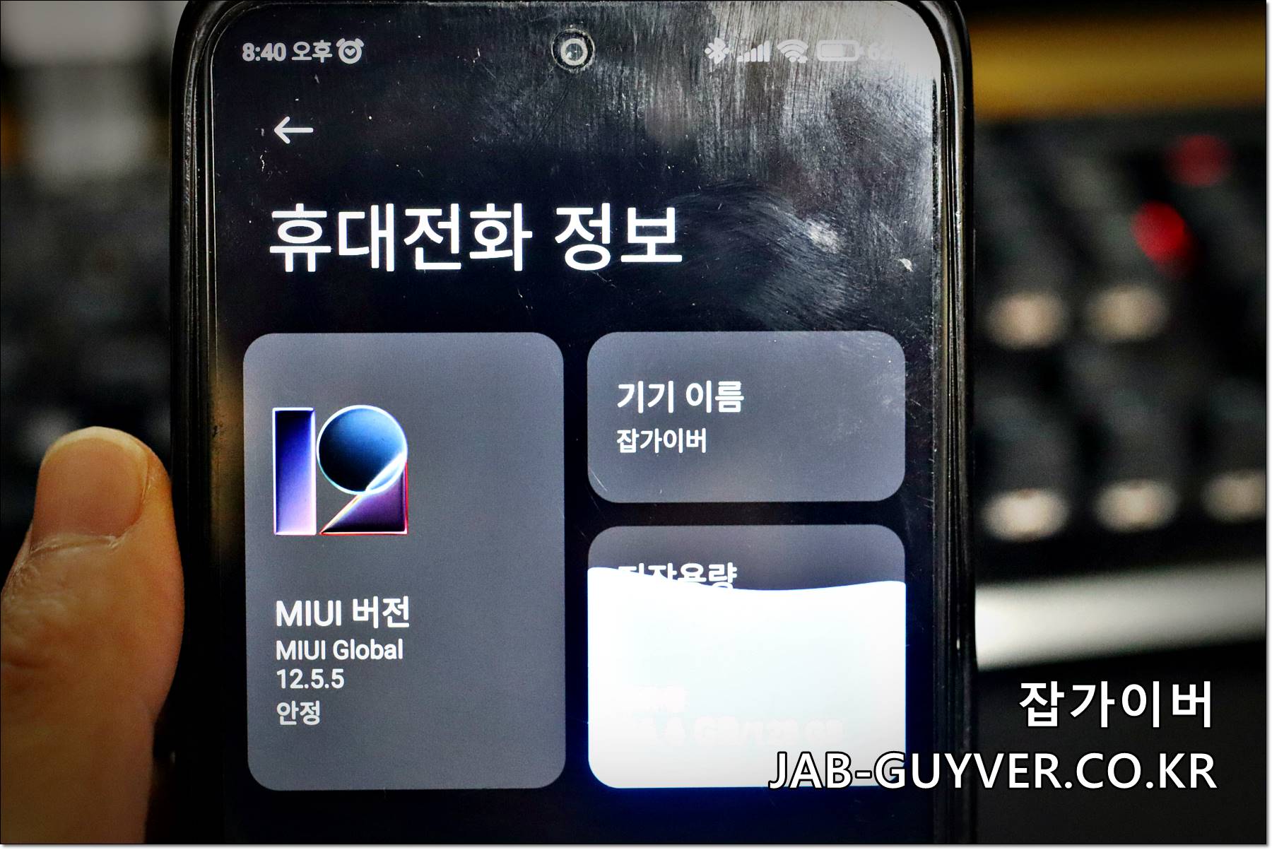 기본적으로 설정으로 들어가면 현재 사용하고 있는 휴대전화 정보에서 Miui 운영체제 버전을 확인할 수 있습니다.