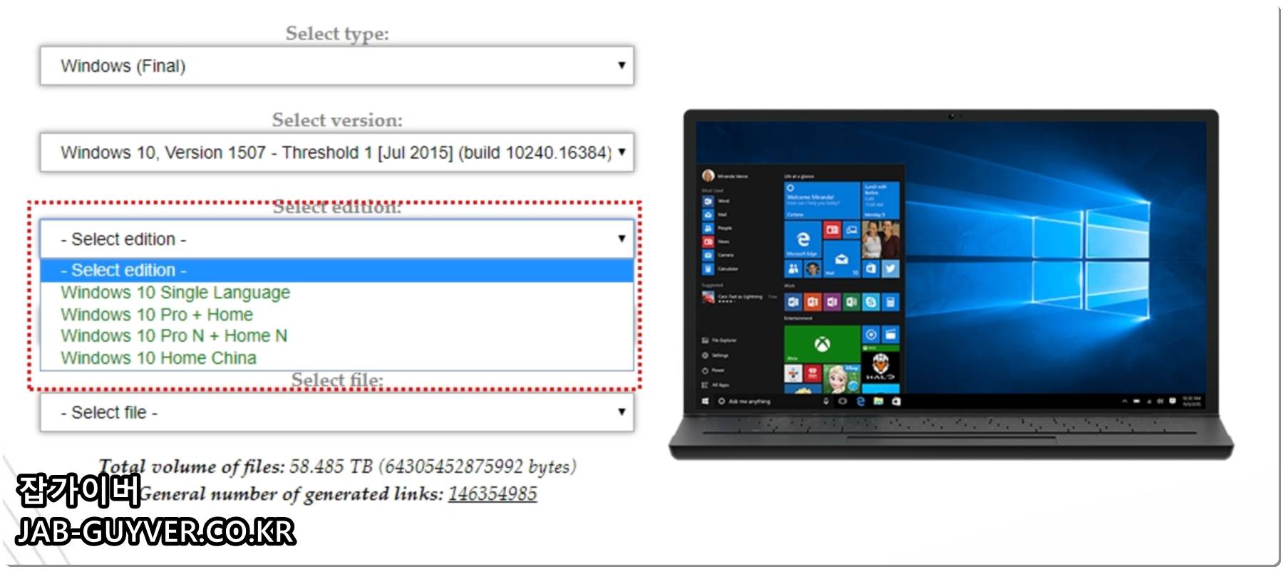 설치용 도구를 실행하면 설치할 윈도우 버전과 아키텍처(64비트)를 고르는 화면이 나오는데, 레노버 프리도스 노트북이라면 대부분 64비트만 선택하면 됩니다.