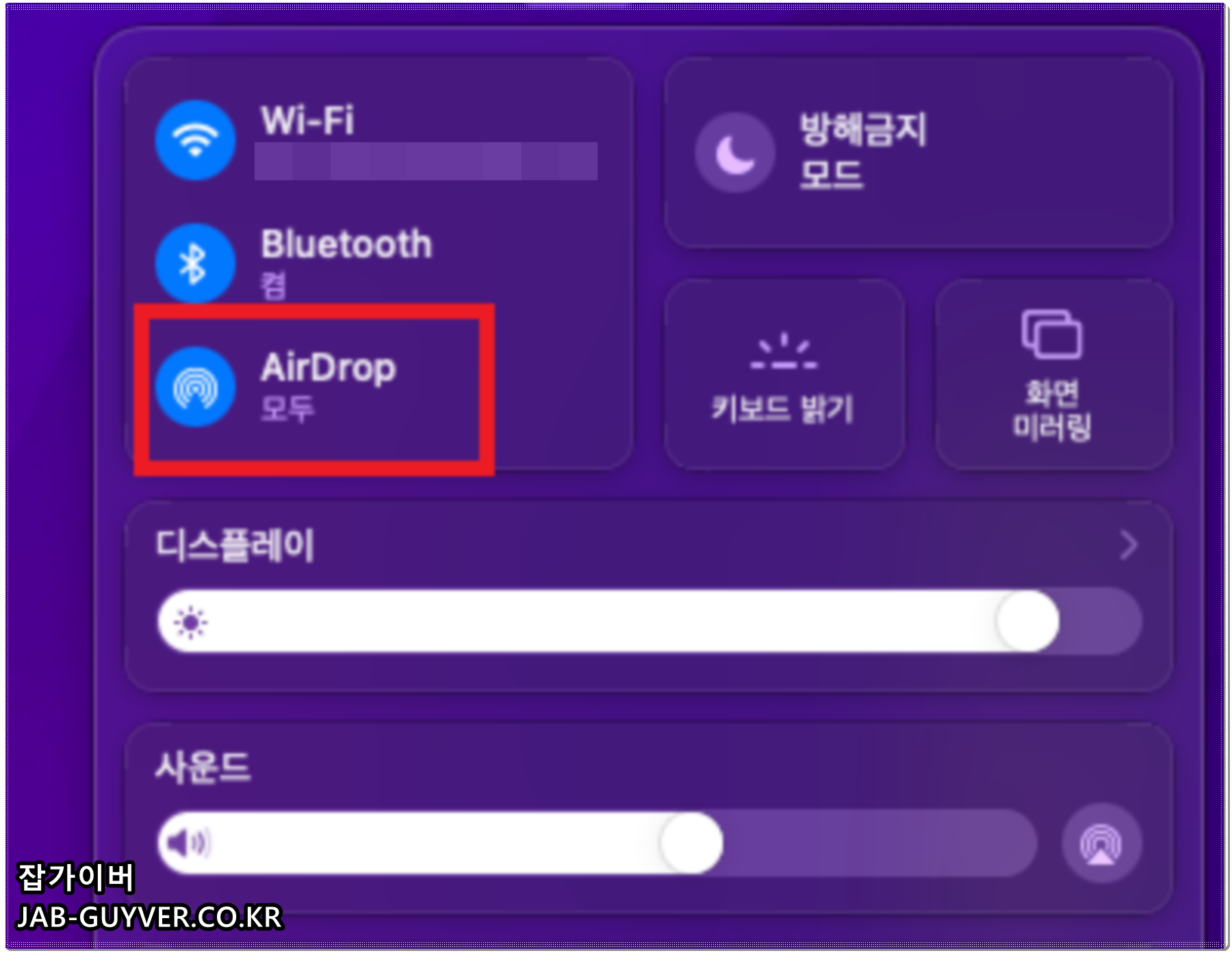 맥북에서 에어드롭을 제대로 쓰려면 먼저 와이파이(Wi-Fi)와 블루투스 두 가지 무선 기능이 모두 켜져 있어야 합니다.