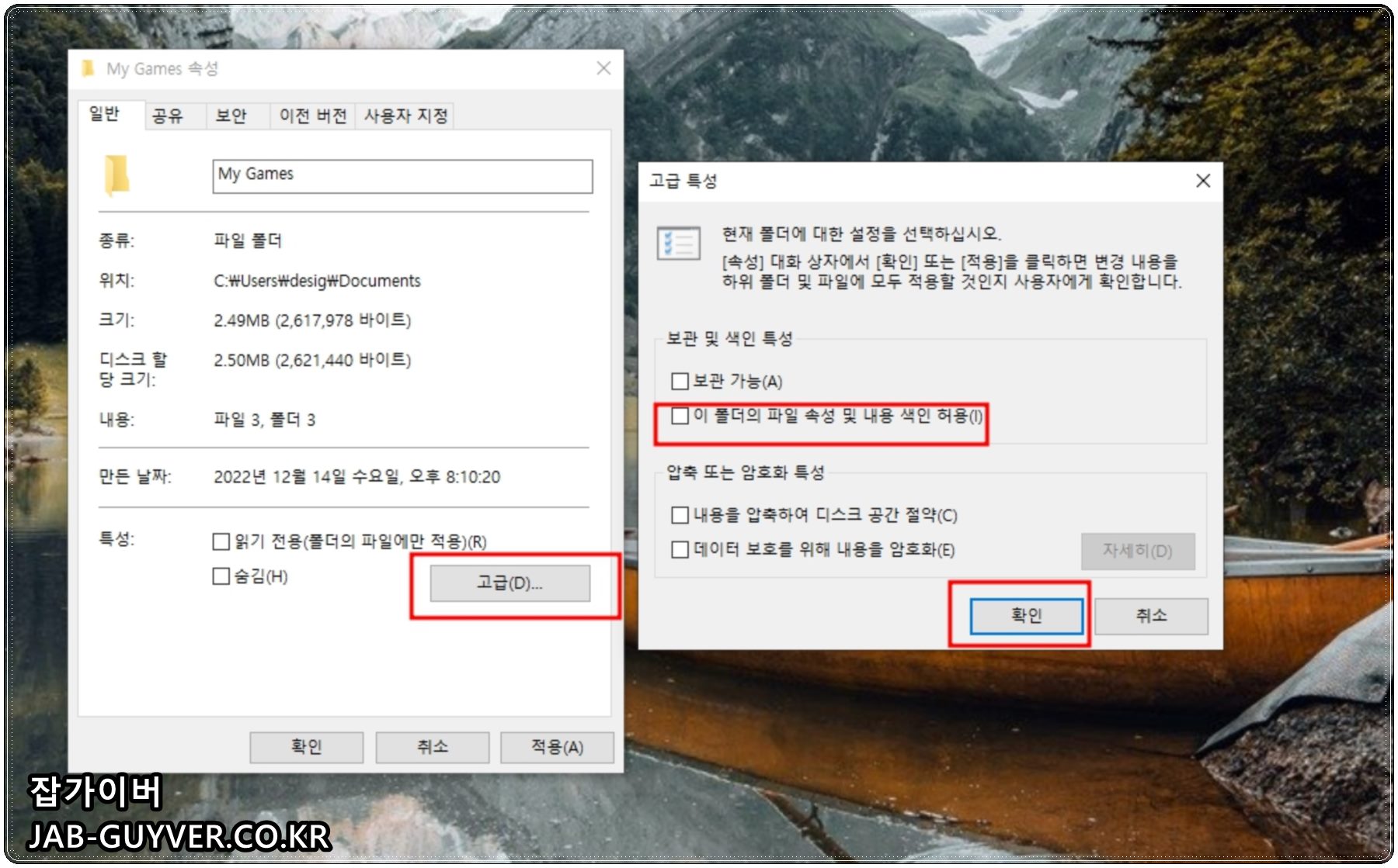 추가로 고급 버튼을 눌러 이 폴더의 파일 속성 및 내용 색인 허용 항목을 상황에 맞게 조절해 두면 검색·색인 과정에서 생기는 자잘한 오류 가능성을 줄일 수 있다.