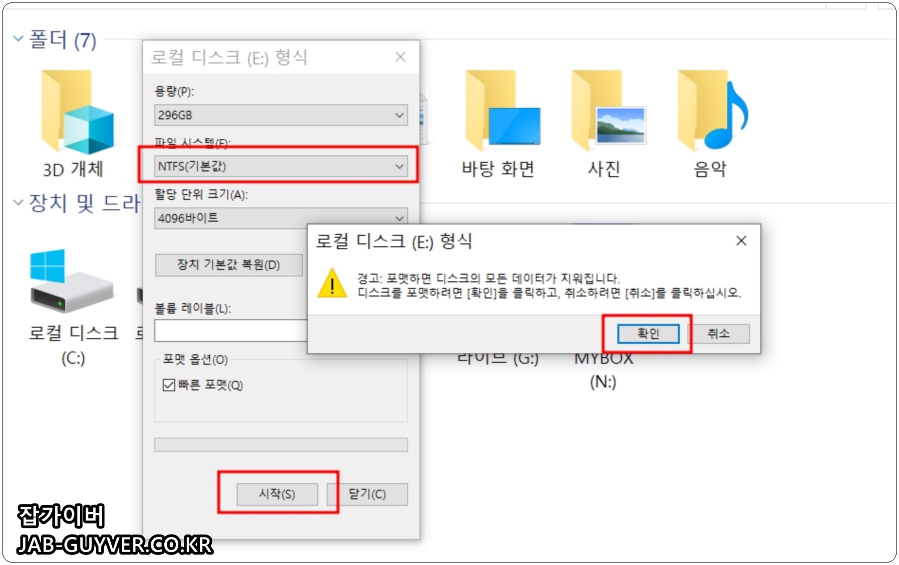 주의할 점은 포맷을 진행하면 드라이브 안의 자료가 모두 지워진다는 것이다.